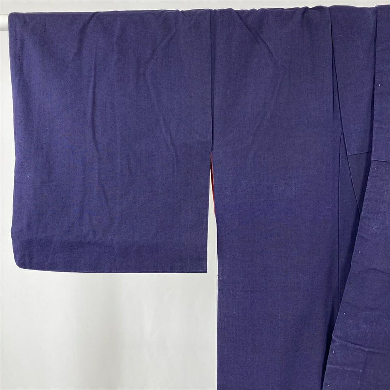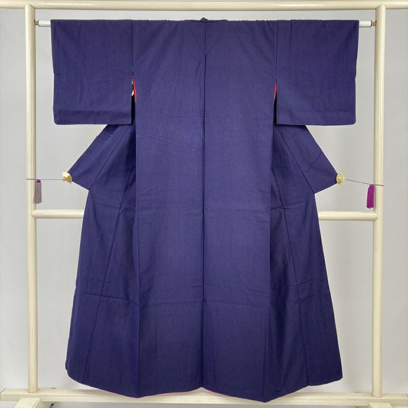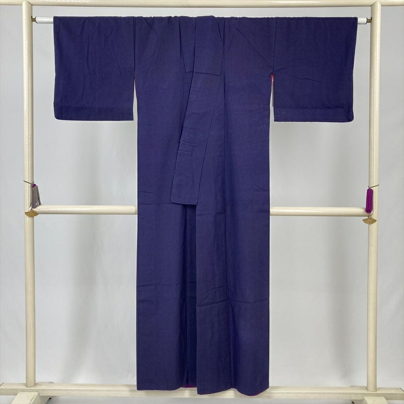 (中古) 紬 紺 ヴィンテージ 無地 袷 絹【身丈】146cm【裄丈】62cm