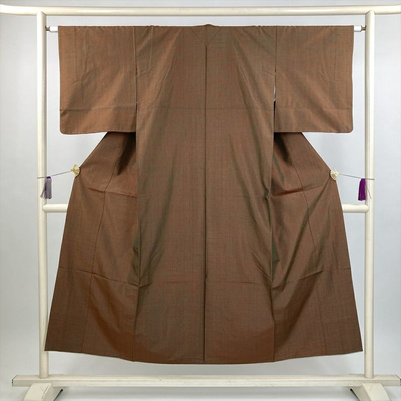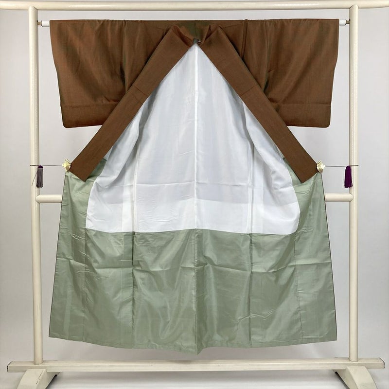 (中古) 紬 玉虫色 茶色 カジュアル 無地 袷 絹 【身丈】146cm【裄丈】63cm