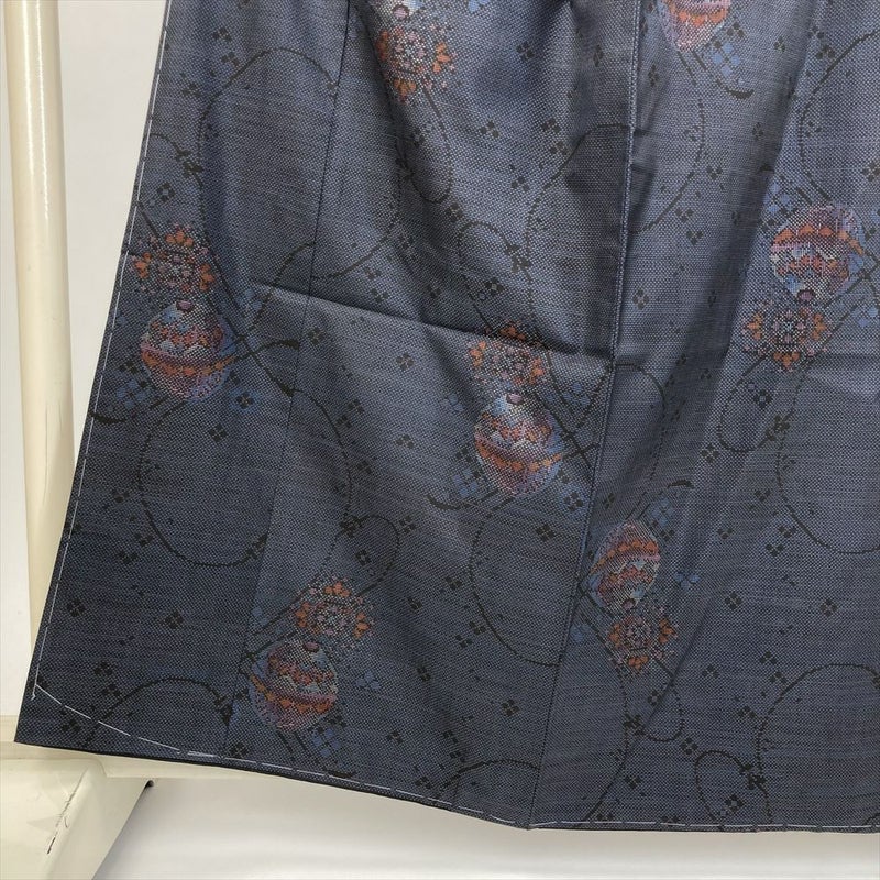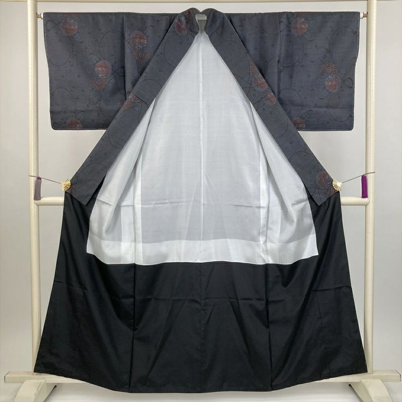 (中古) 大島紬 黒 紺 カジュアル 手鞠 組紐 袷 絹 【身丈】156.5cm【裄丈】65cm
