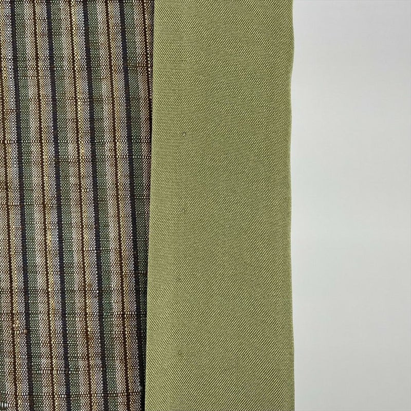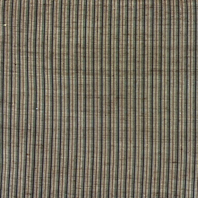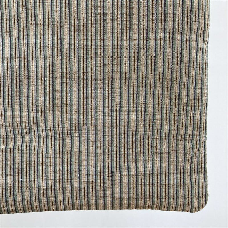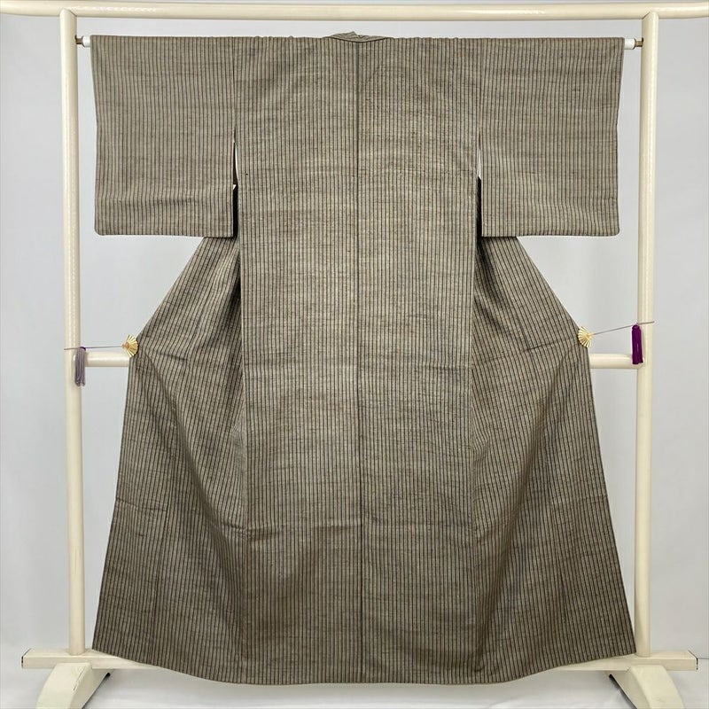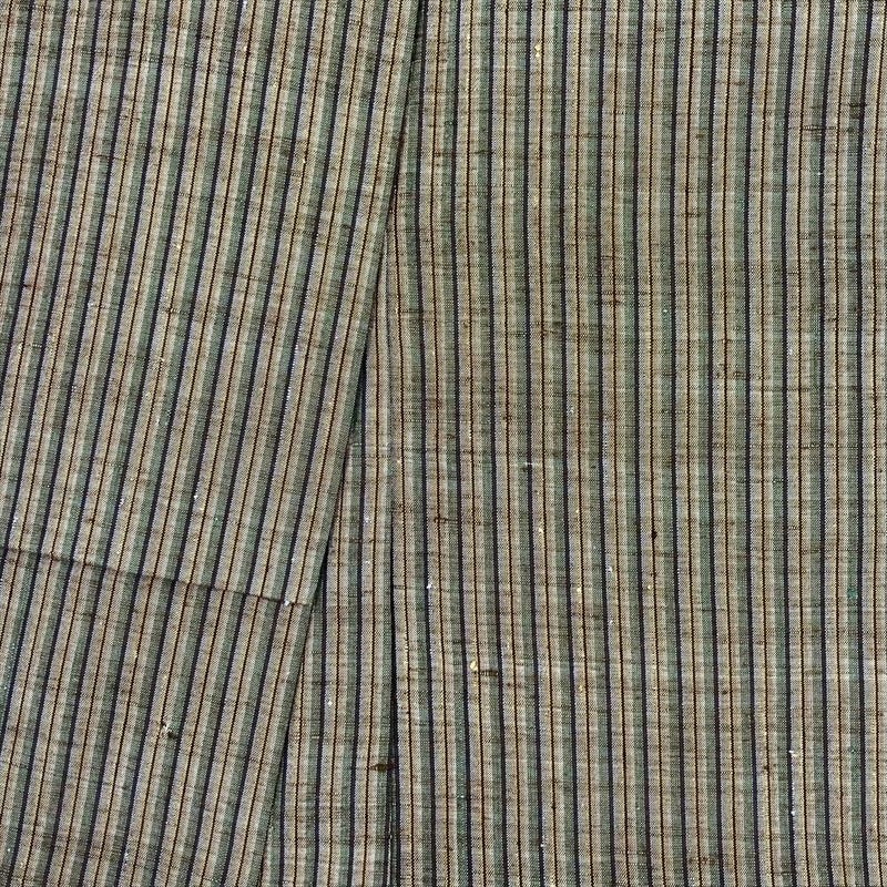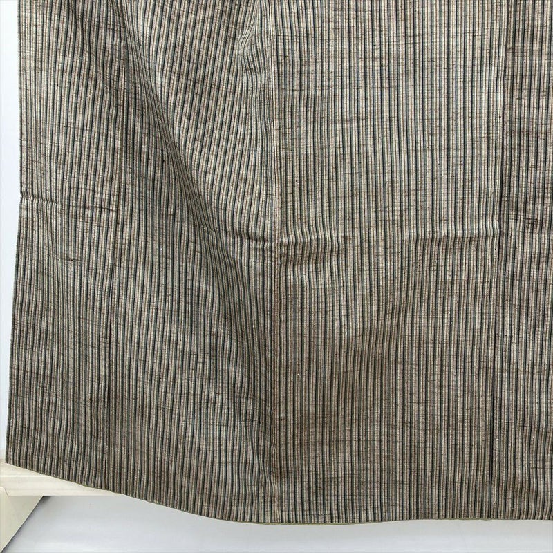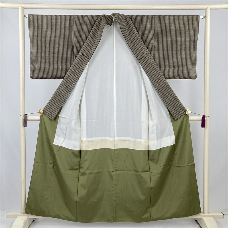 (中古) 紬 柳茶 緑 カジュアル 縞 袷 絹【身丈】154.5cm【裄丈】64cm