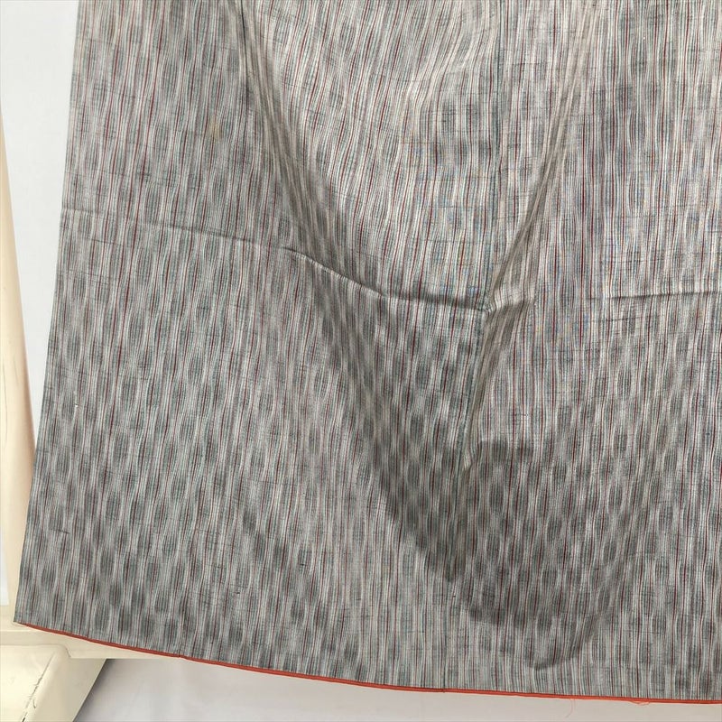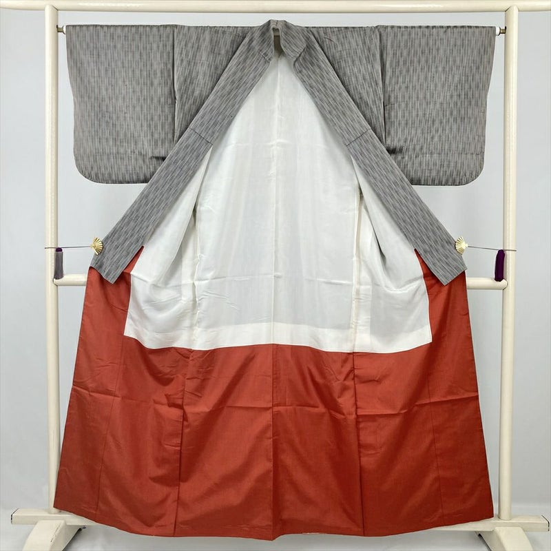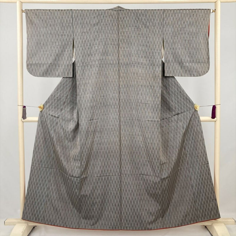 (中古) 紬 灰 グレー カジュアル よろけ縞 袷 絹【身丈】152.5cm【裄丈】65cm