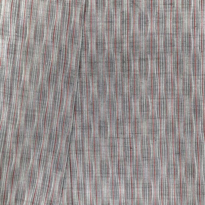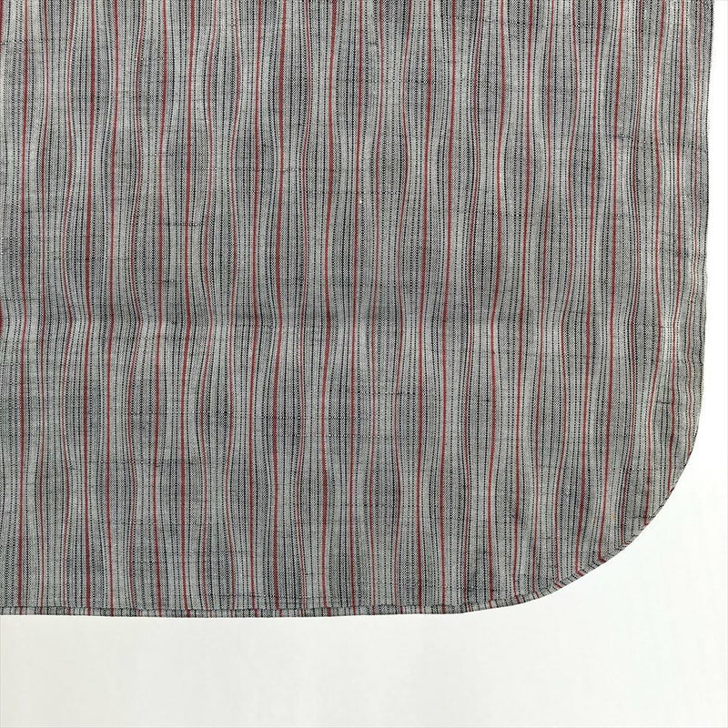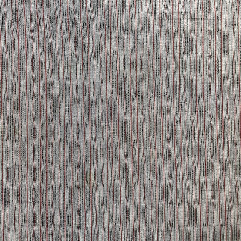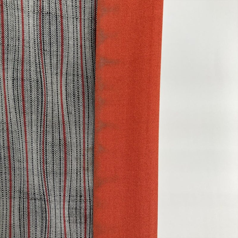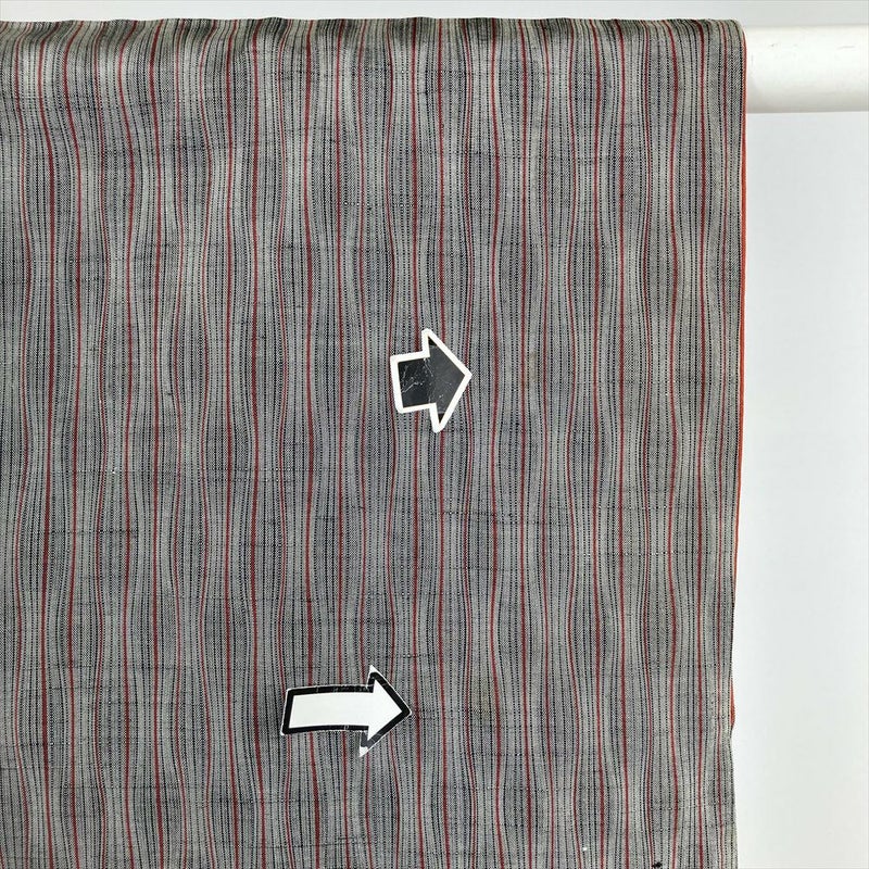 <div class=揺らぎのある縞が印象的な、赤いよろけ縞のきもの。