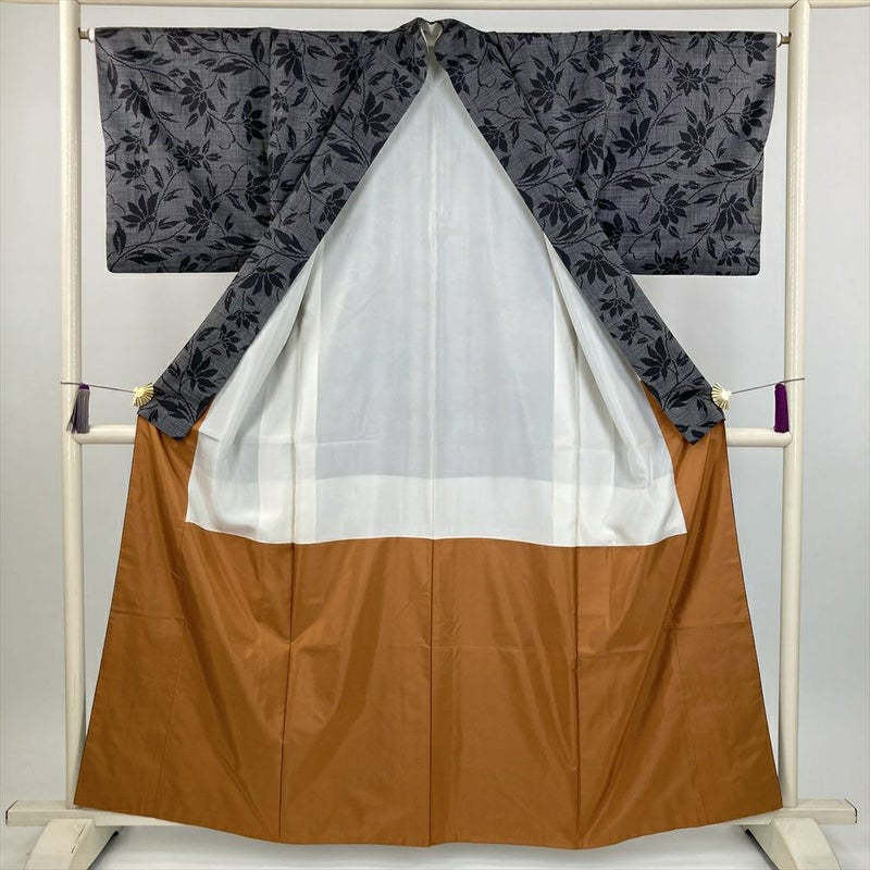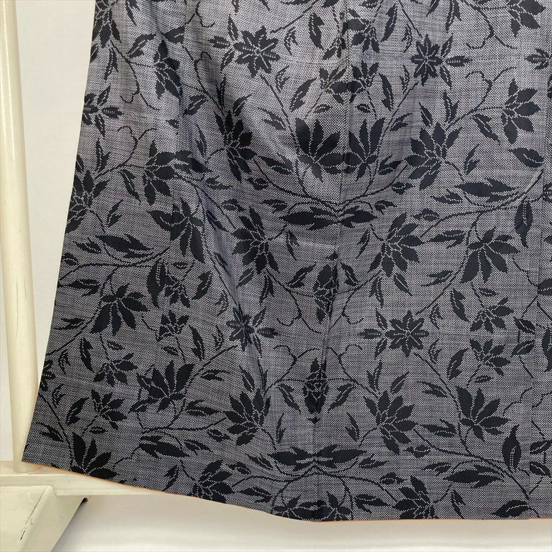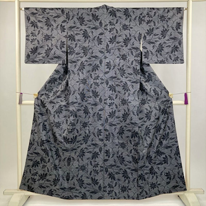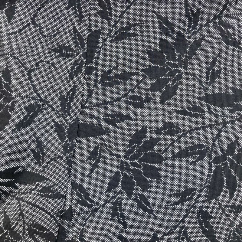 (中古) 大島紬 黒 カジュアル 蔓花 袷 絹 【身丈】155.5cm【裄丈】65cm