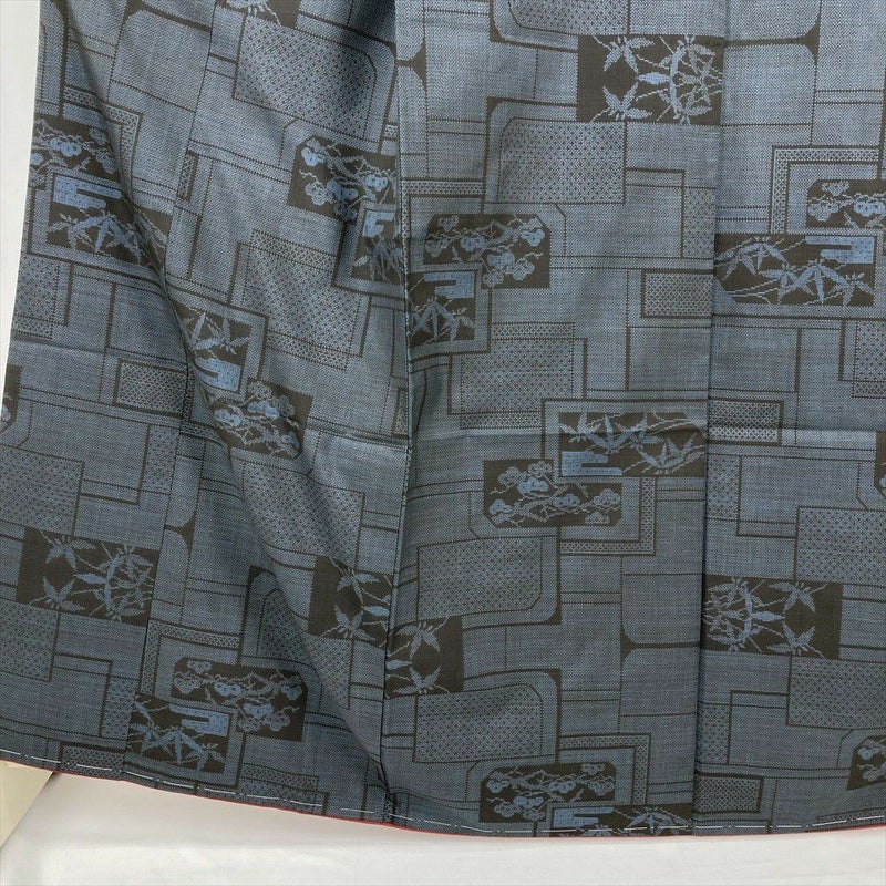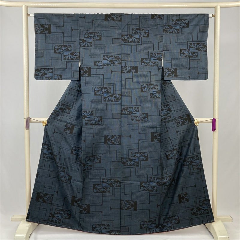 (中古) 大島紬 黒 カジュアル 松 笹 袷 絹 【身丈】158.5cm【裄丈】64.5cm