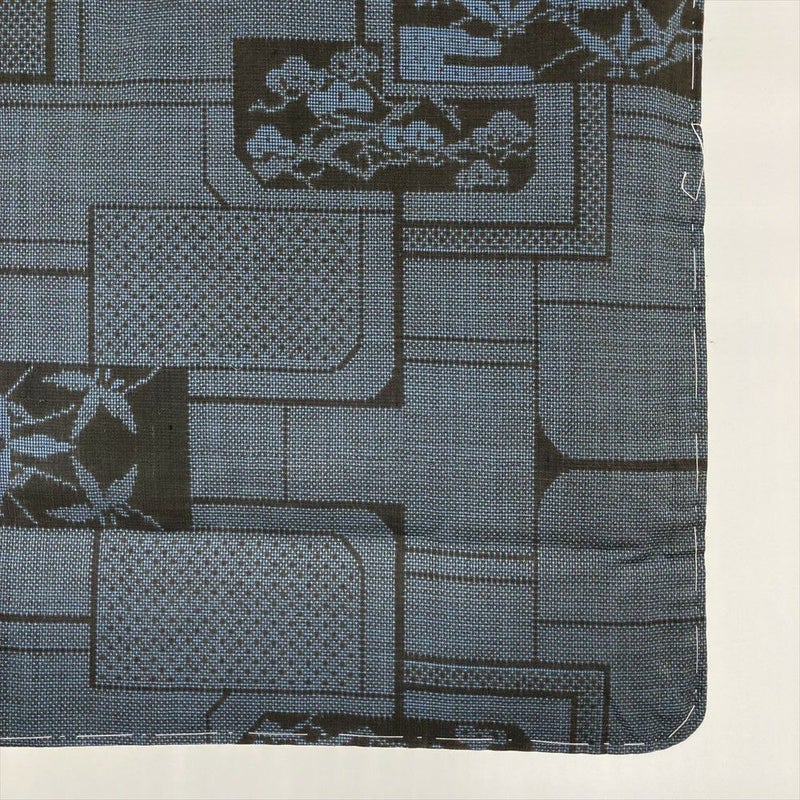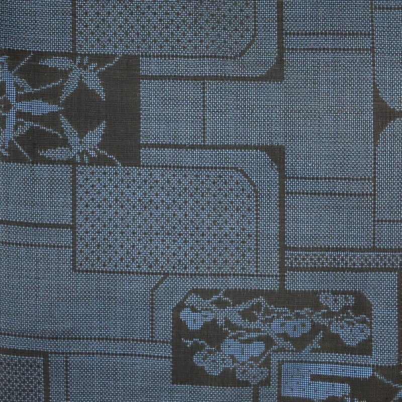 黒と紺のシックな色合いに、縁起の良い笹と松の文様をあしらった本場大島紬。