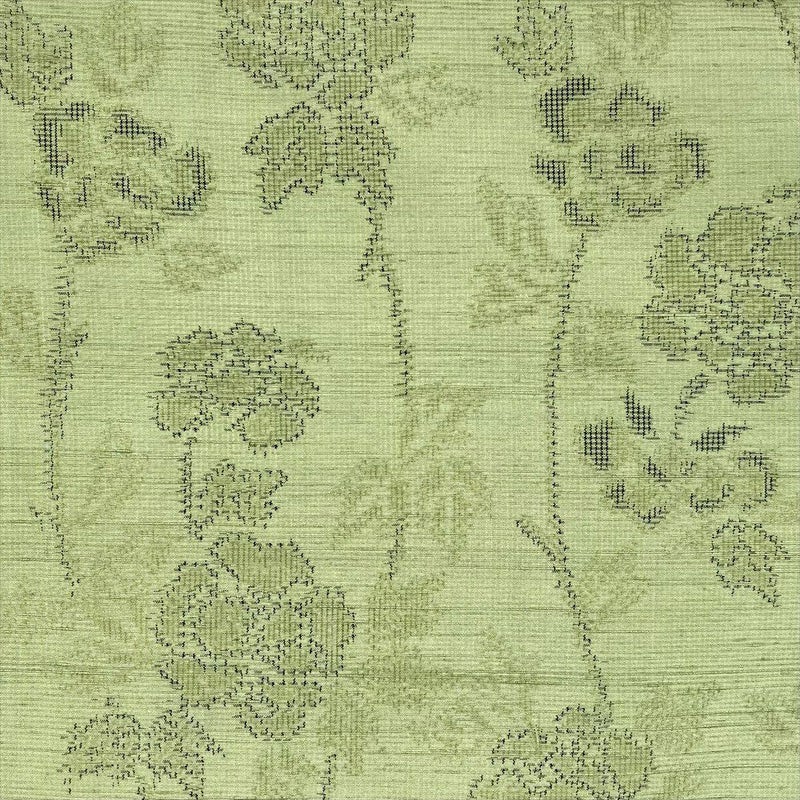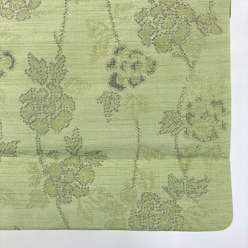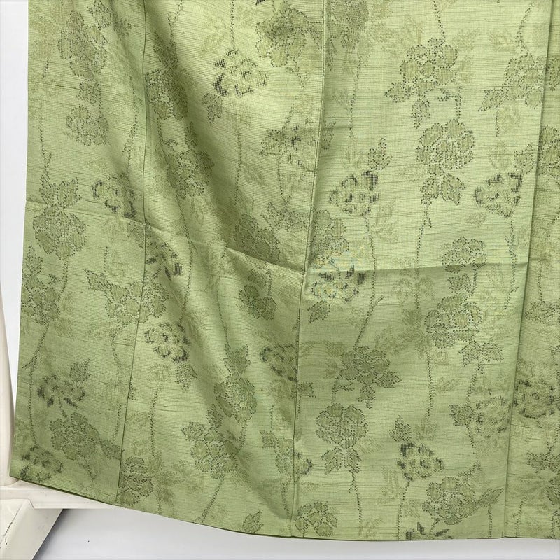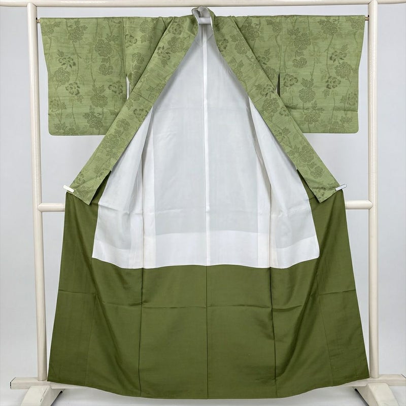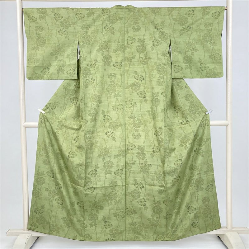 (中古) 紬 黄緑 カジュアル 牡丹 袷 絹【身丈】155cm【裄丈】67cm