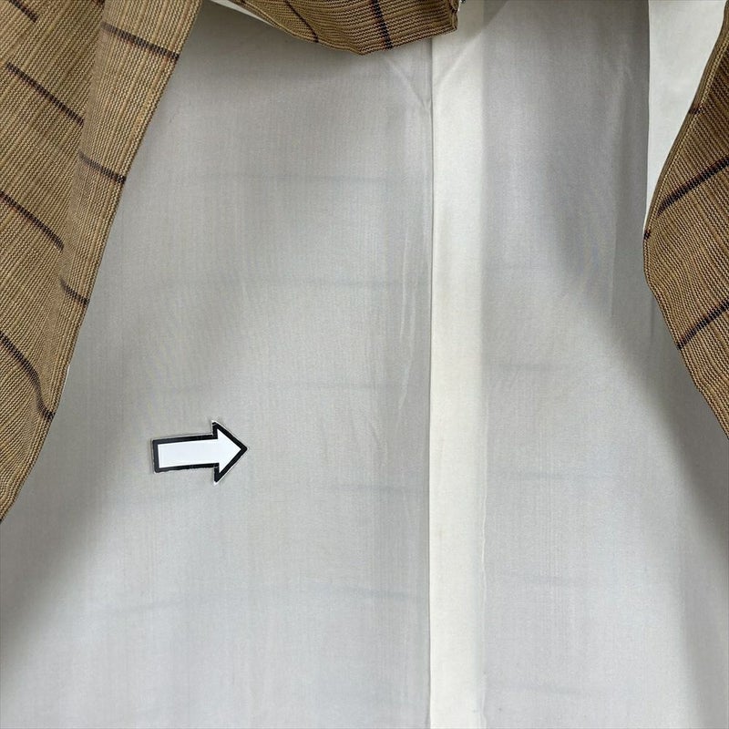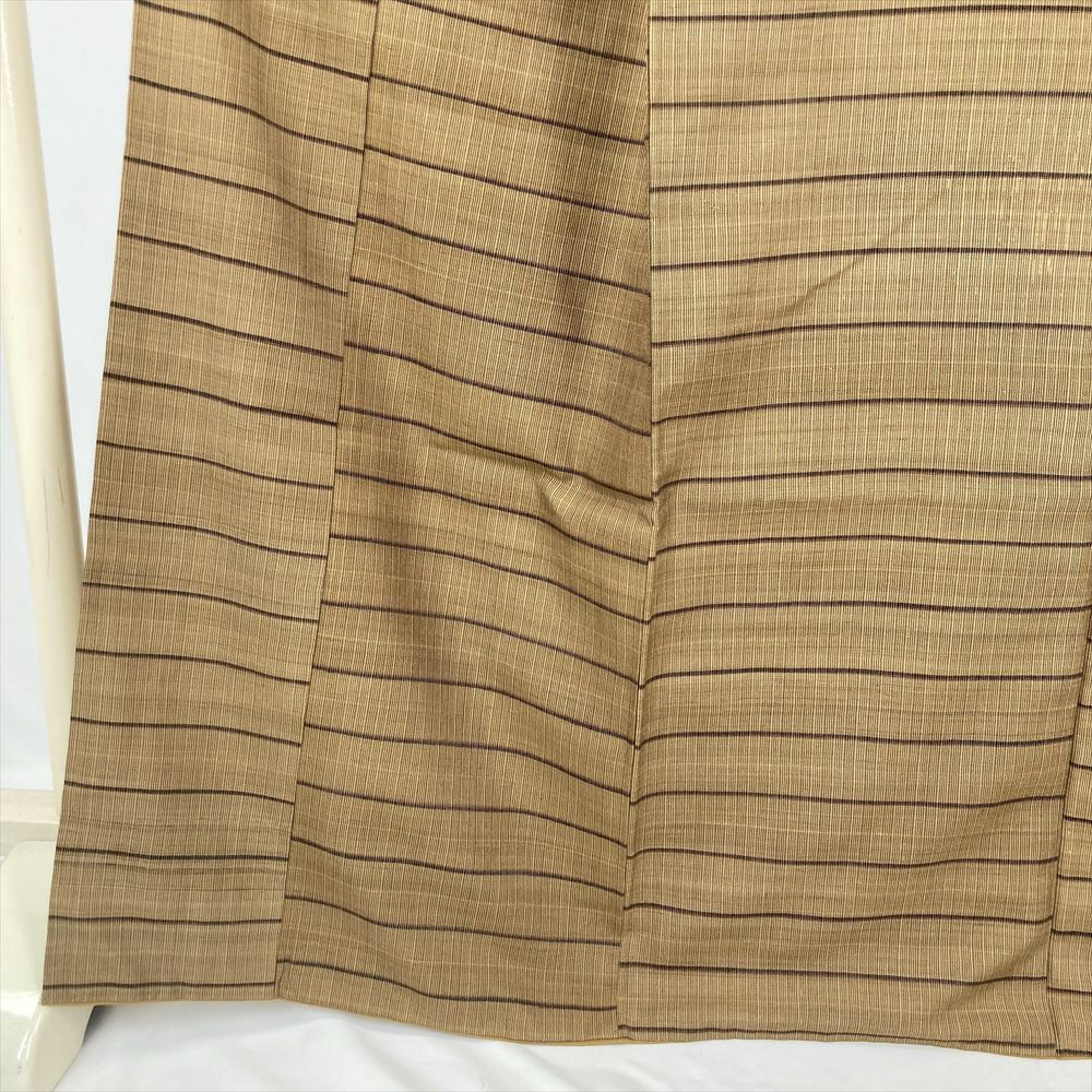 (中古) 紬 黄土色 黄 カジュアル 変わり格子 袷 絹【身丈】160cm【裄丈】67.5cm