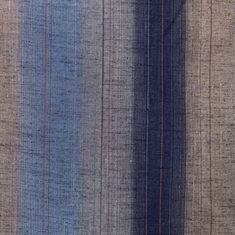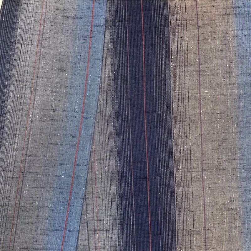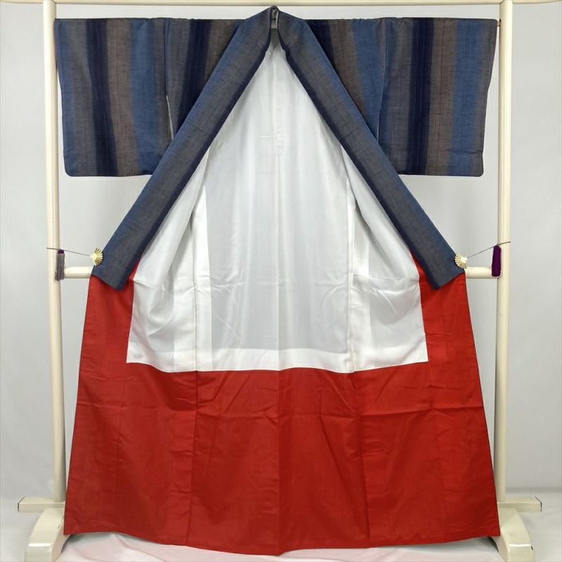 (中古) 紬 紺 青 灰 カジュアル 縞 袷 絹【身丈】158cm【裄丈】69.5cm