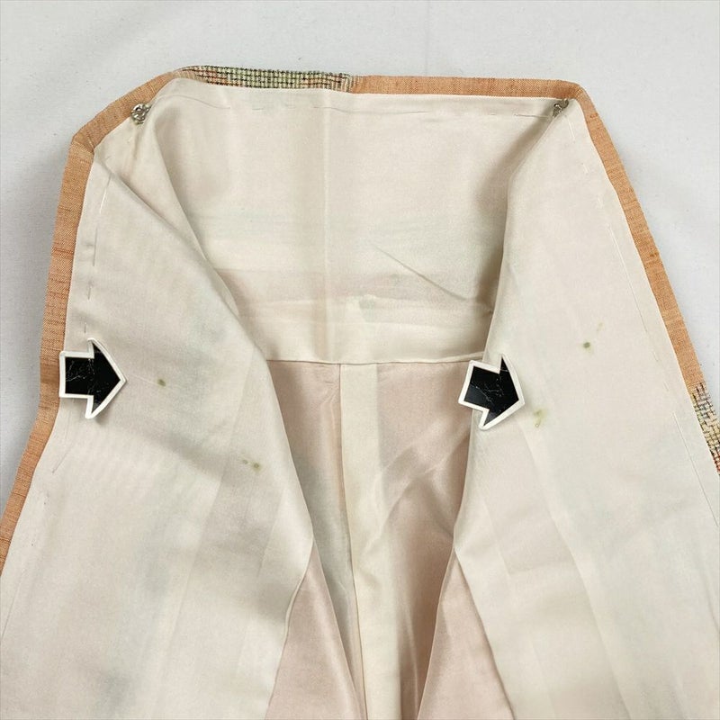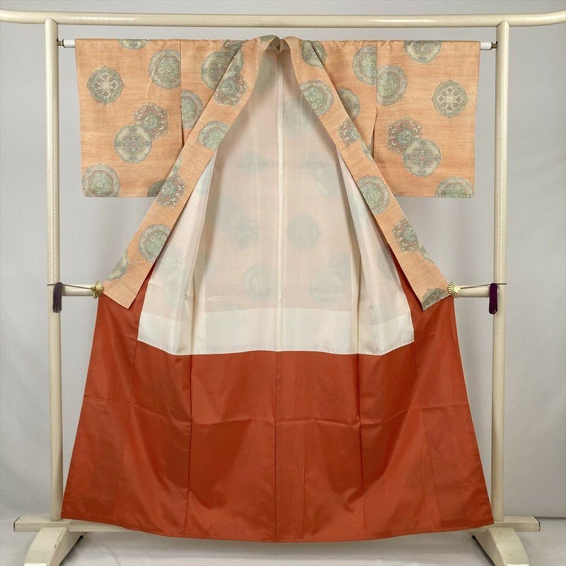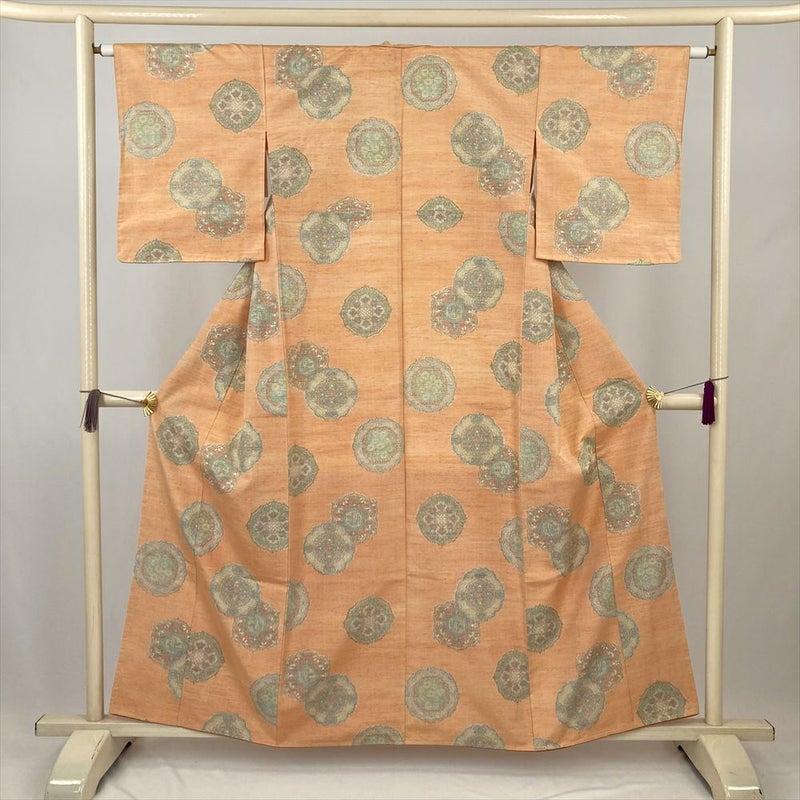 (中古) 紬 薄オレンジ カジュアル 鏡裏文 袷 絹 【身丈】152cm【裄丈】63cm