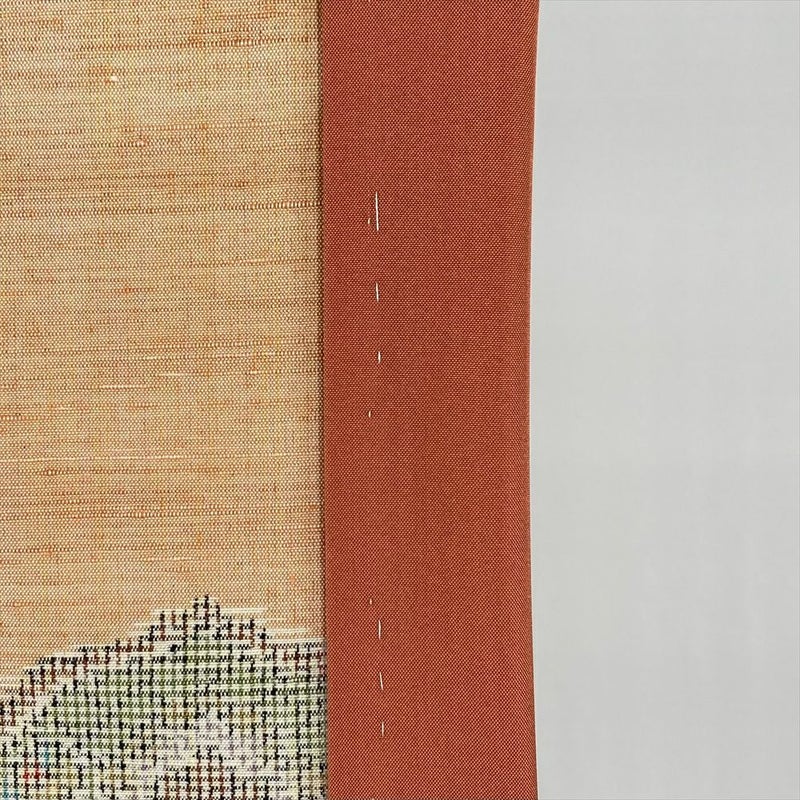鏡の裏に描かれた吉祥文様をかたどった格調高い柄が、素朴な紬の風合いと見事に調和しています。上品ながらも、温かみのある雰囲気が魅力の一枚です。