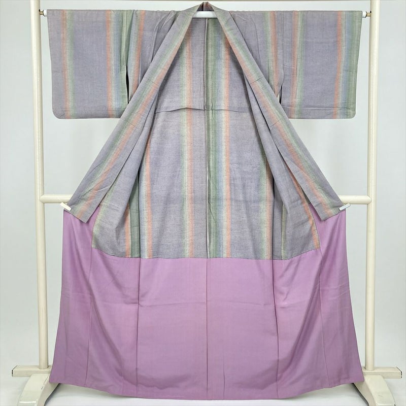 (中古) 紬 紫 カジュアル グラデーション 袷 絹【身丈】159cm【裄丈】65cm