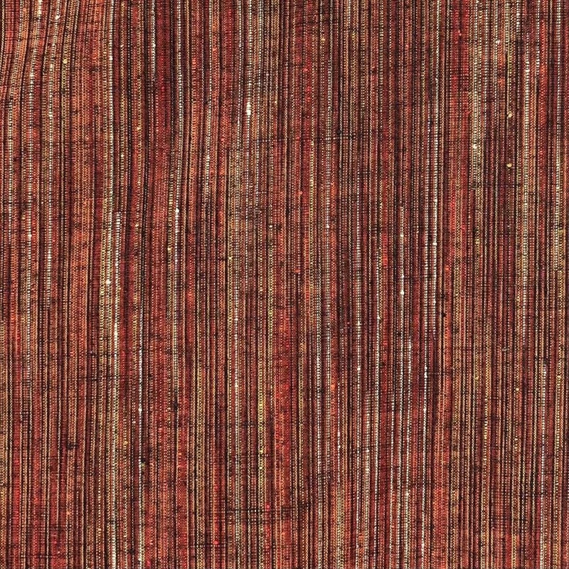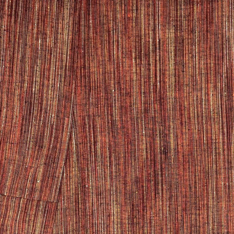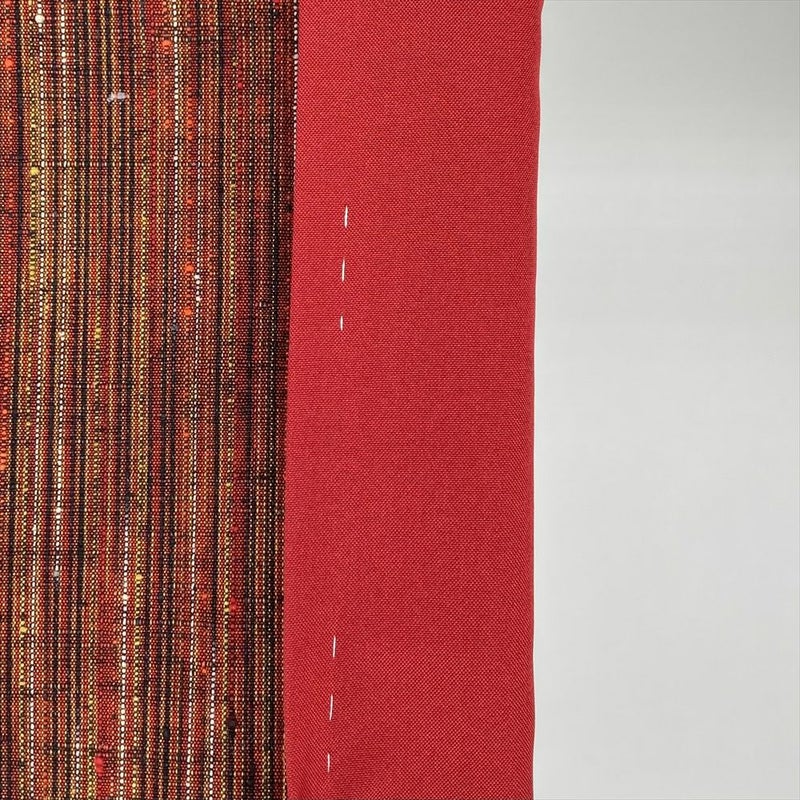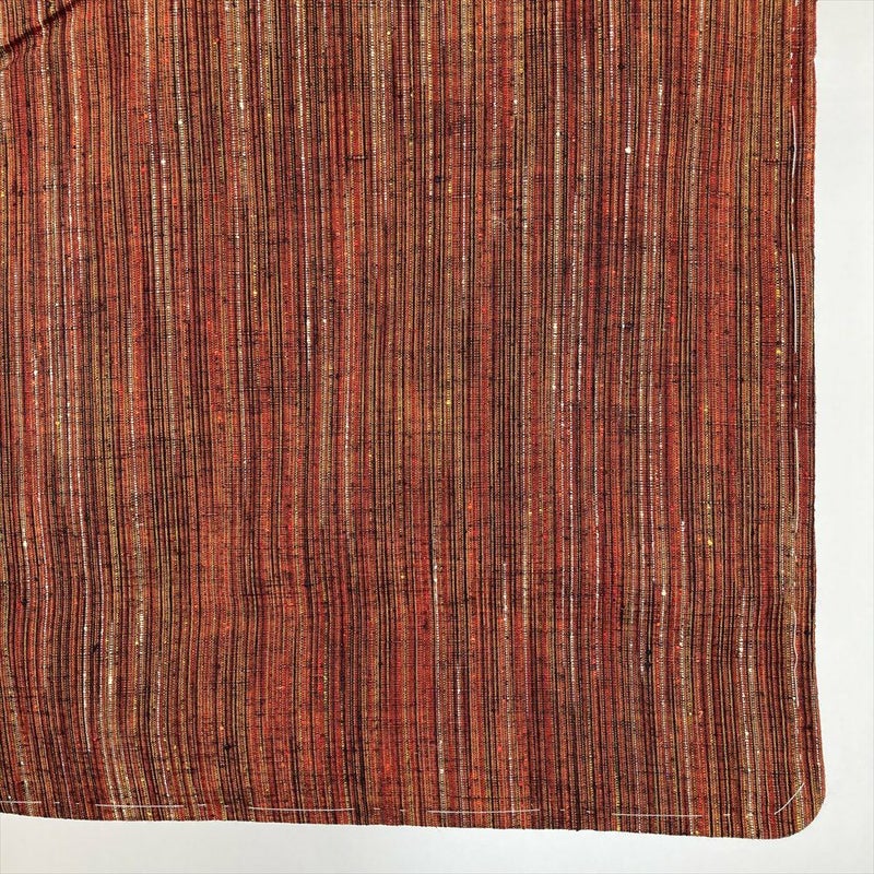 上品な赤茶の地に、繊細な縞文様が織りなす紬です。