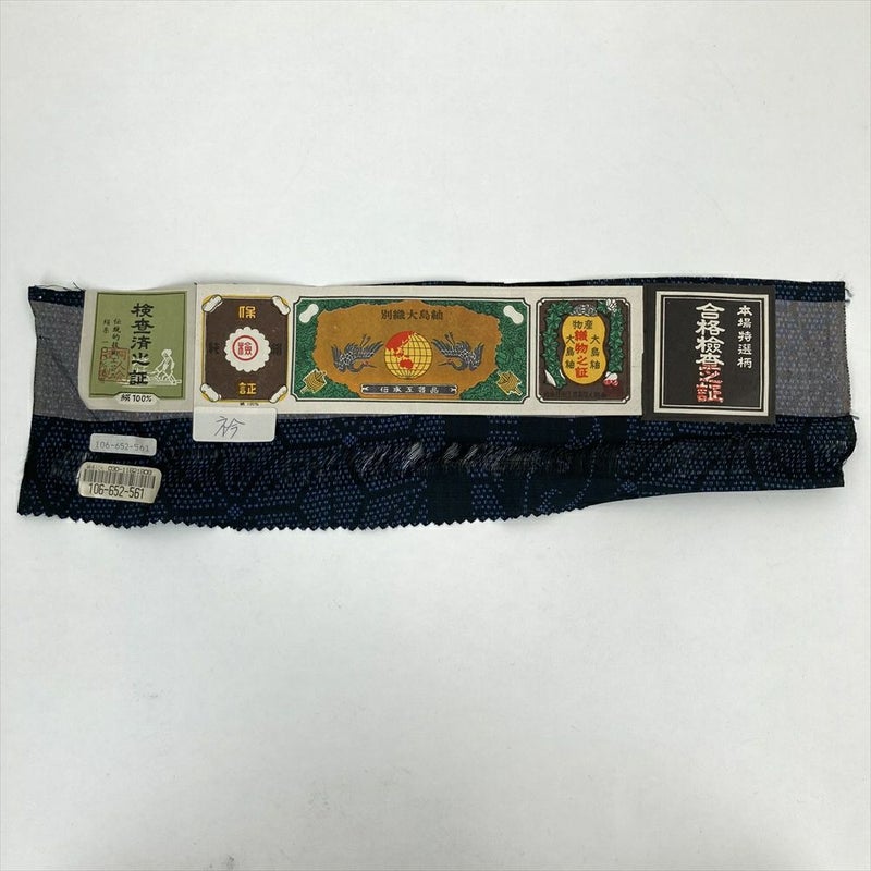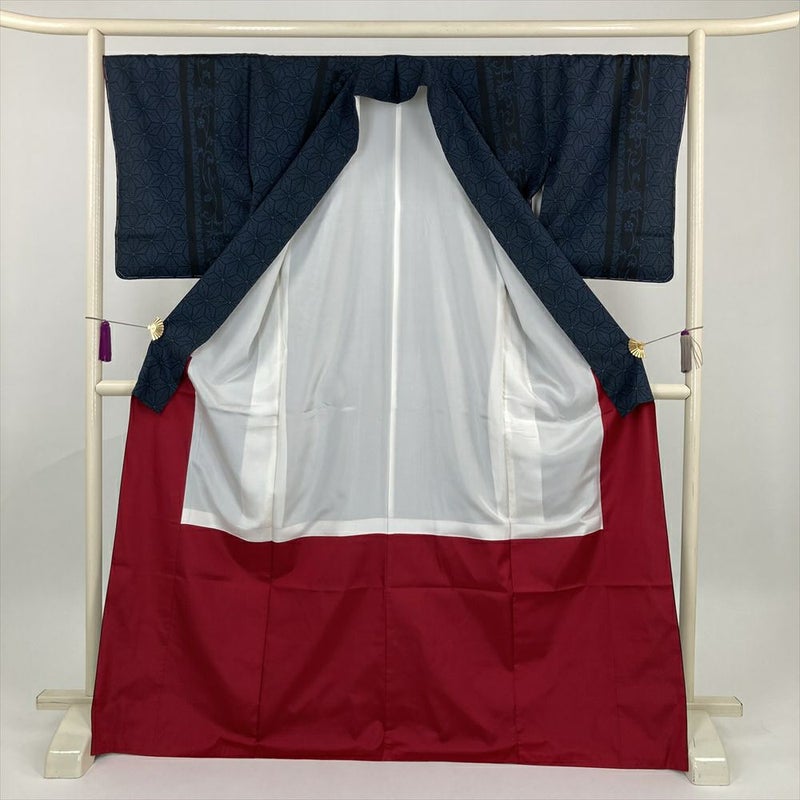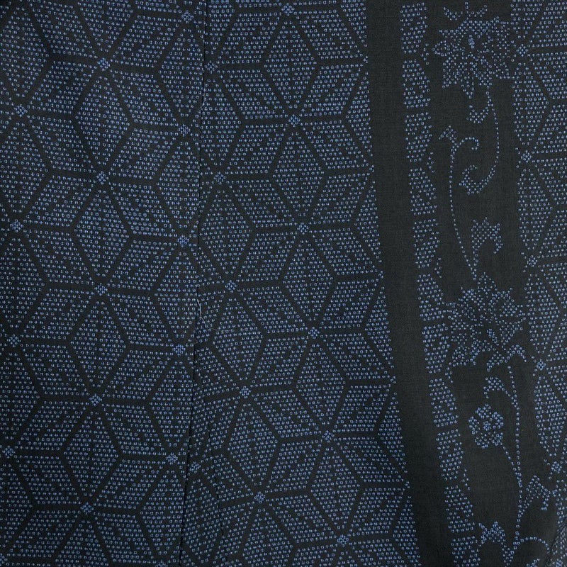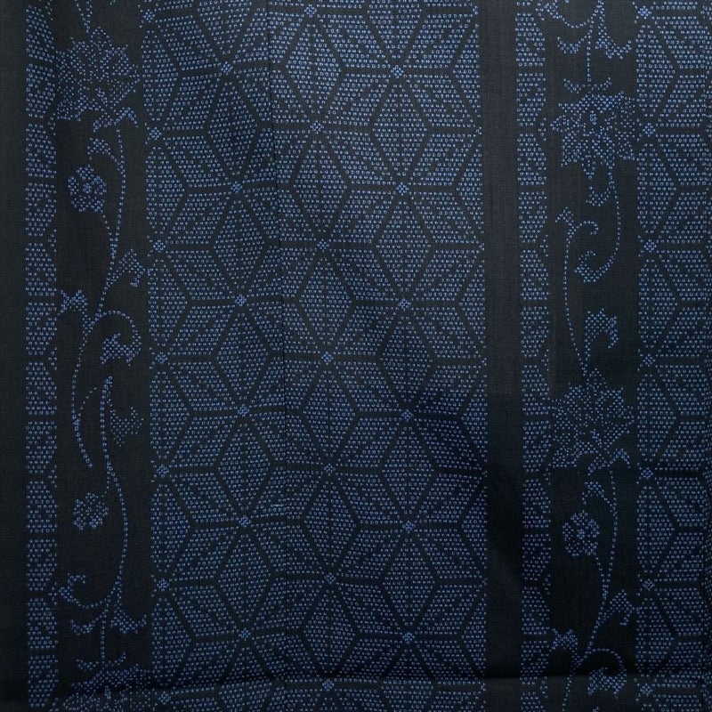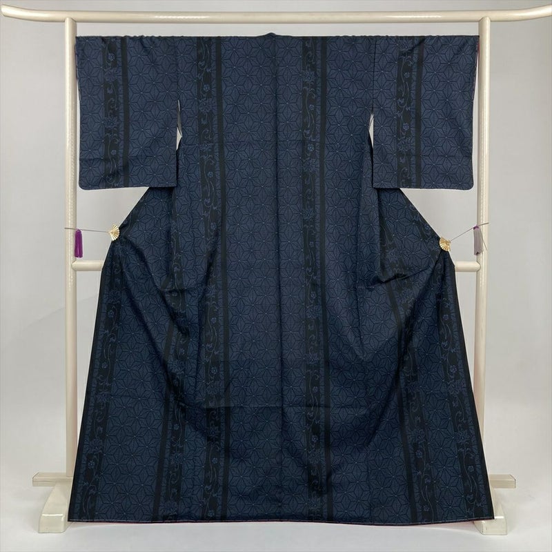 (中古) 紬 黒 紺 カジュアル 麻の葉 袷 絹【身丈】166cm【裄丈】68.5cm