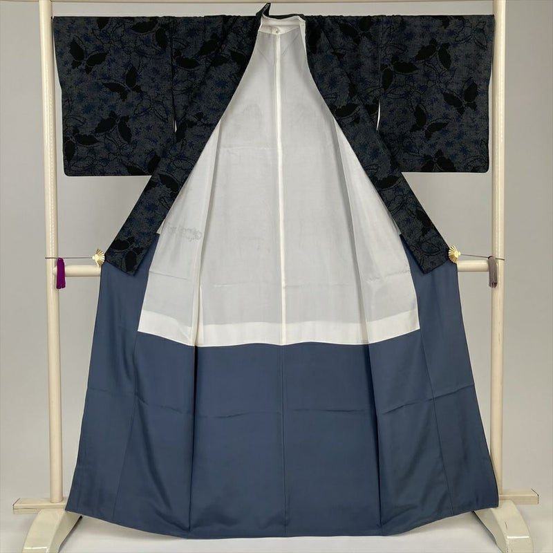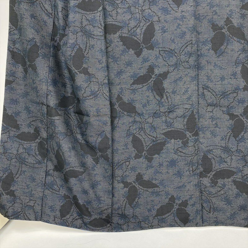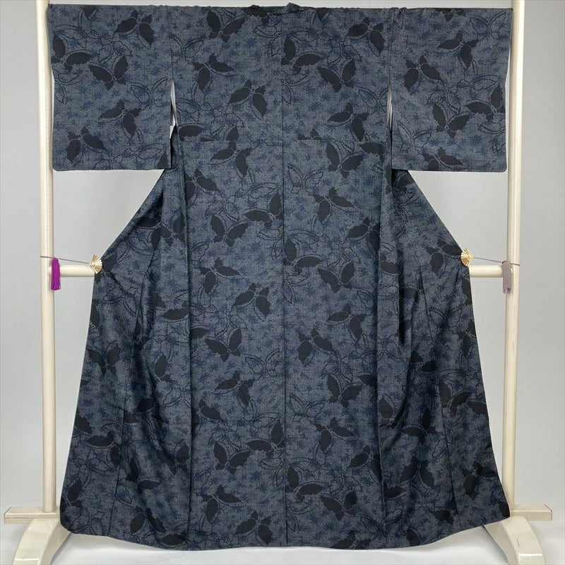 (中古) 大島紬 黒 紺 カジュアル 蝶 袷 絹【身丈】157.5cm【裄丈】69cm