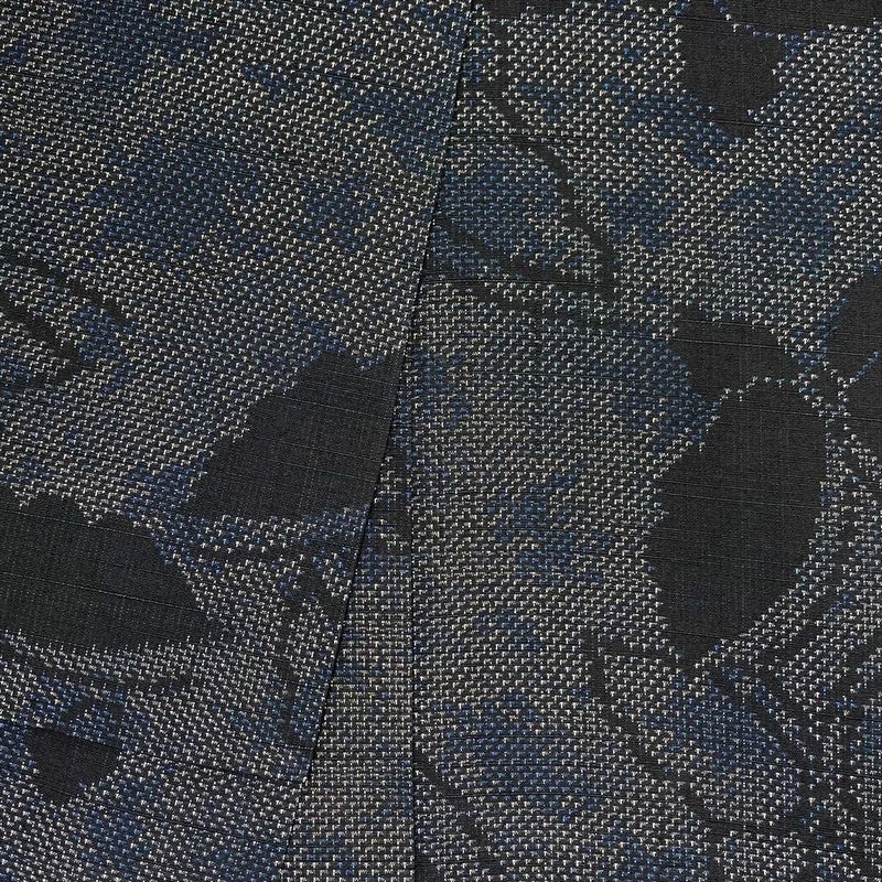 しっとりとした黒地に、ひらひらと優雅に蝶が舞うデザインが魅力の大島紬です。