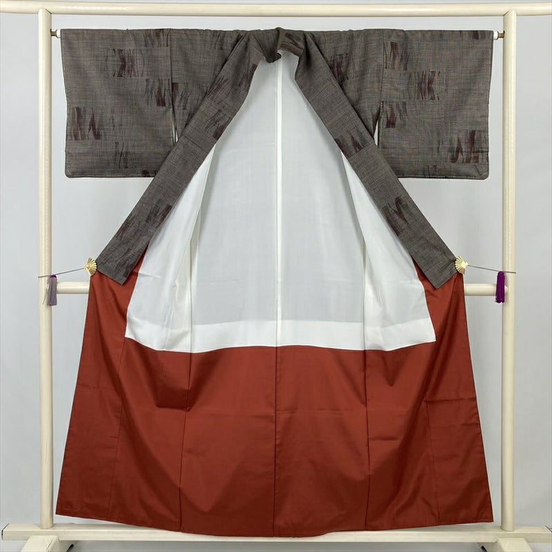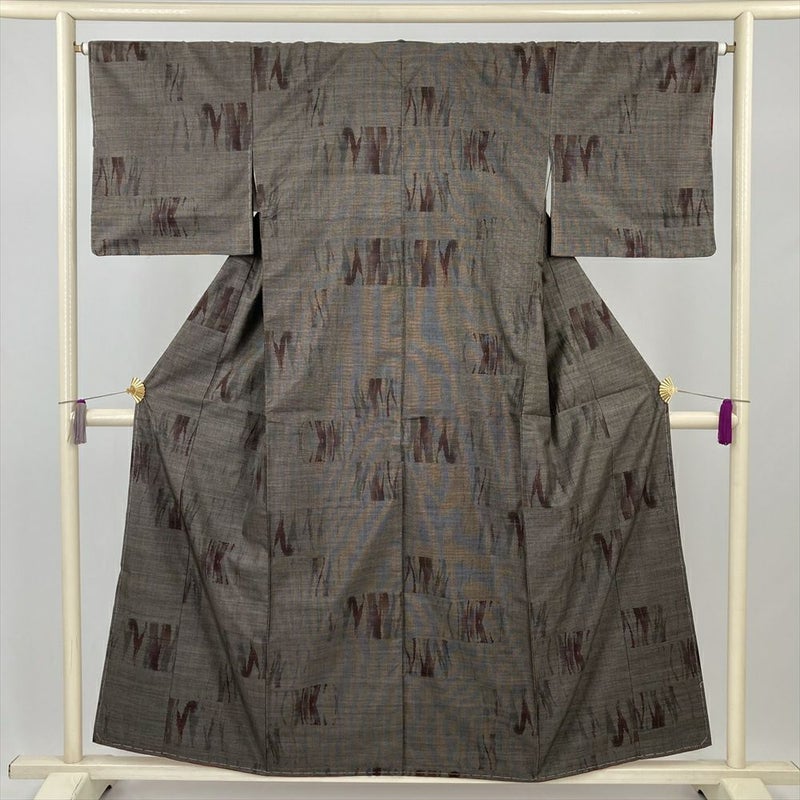 (中古) 大島紬 焦げ茶 カジュアル 抽象柄 袷 絹【身丈】150.5cm【裄丈】65cm