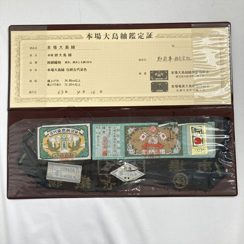 深みのある焦げ茶に、泥染めならではの温かみを感じる本場大島紬です。