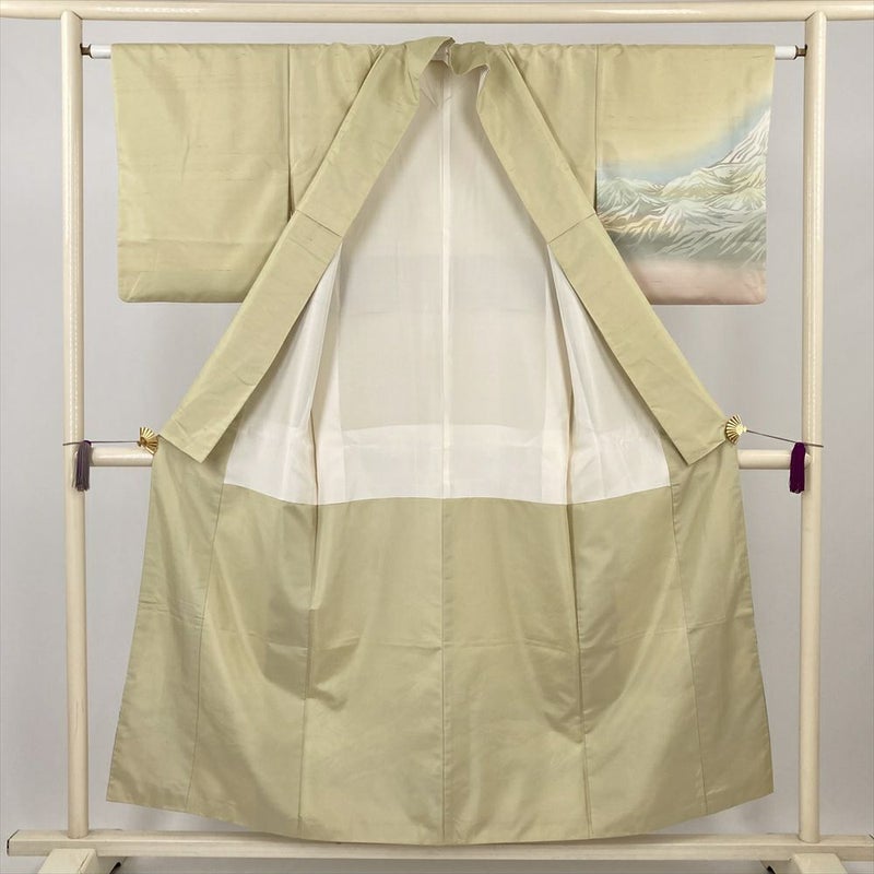(中古) 紬訪問着 薄鶸 薄黄 セミフォーマル 連なる山並み 袷 絹【身丈】147.5cm【裄丈】62.5cm
