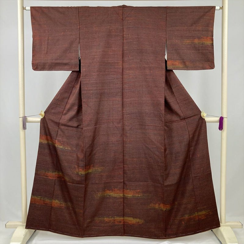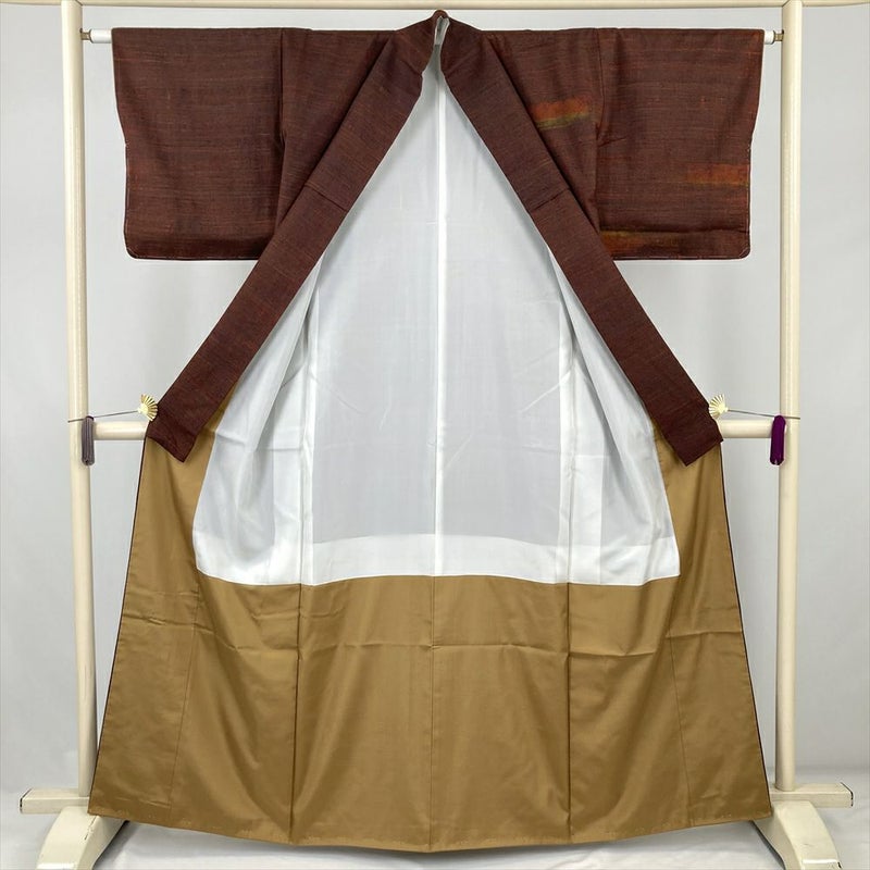 しつけ糸付きの美品、深い赤味を帯びた茶色が印象的なきもの。