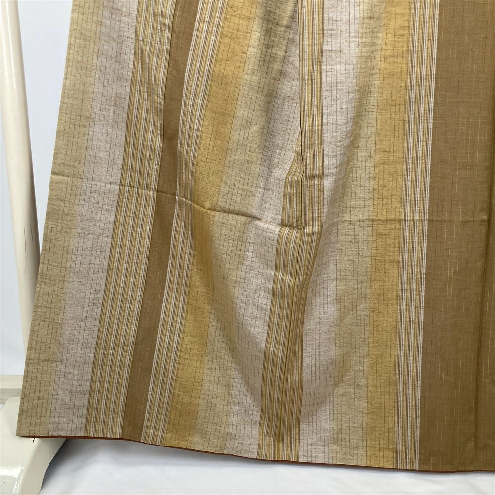落ち着いた黄色系の縞文様が、穏やかで洗練された雰囲気をまとい、日常の装いにそっと彩りを添えます。