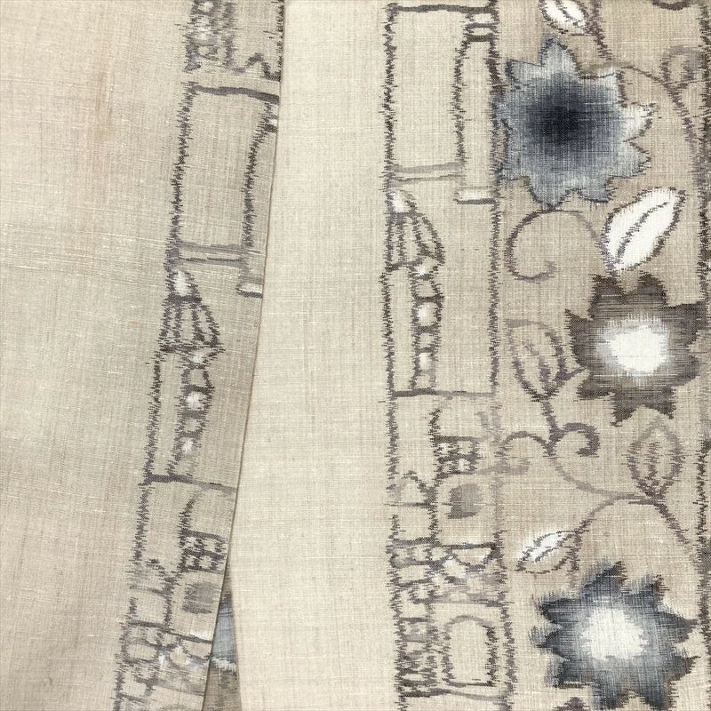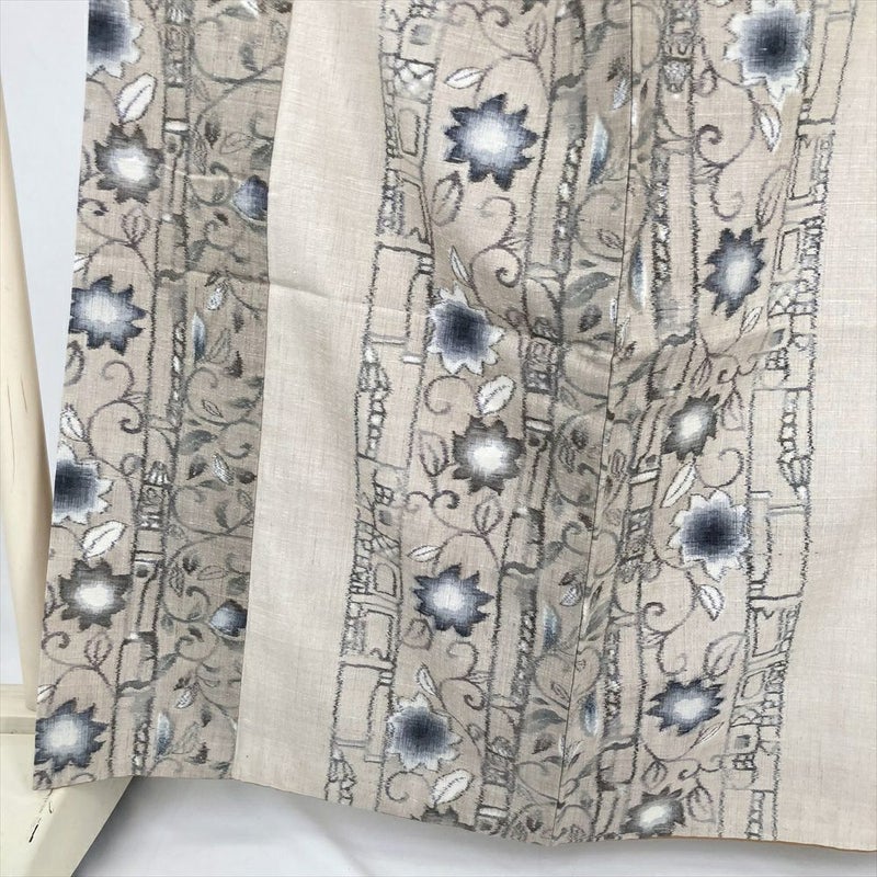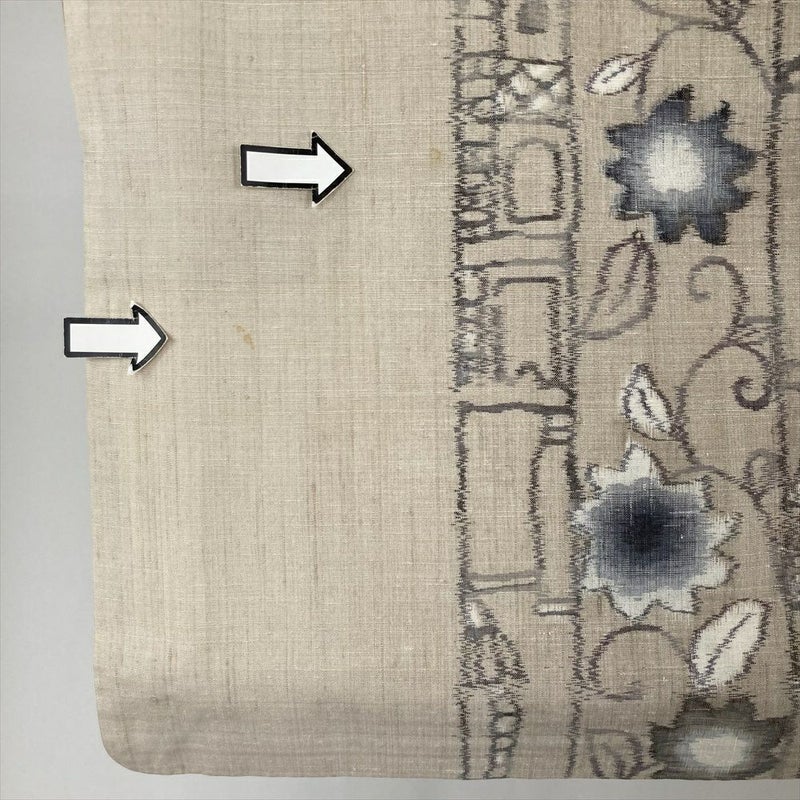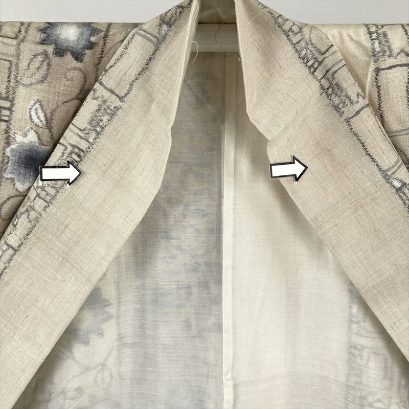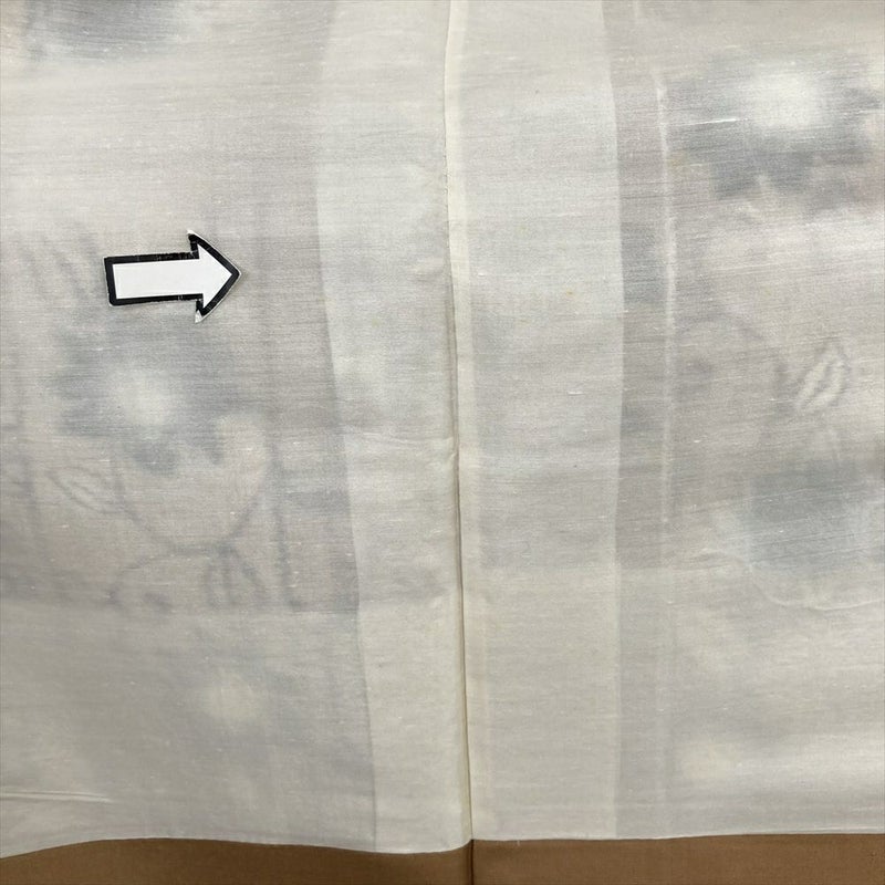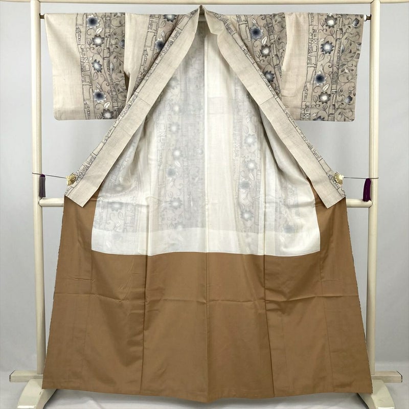 (中古) 紬 生成り 薄ベージュ カジュアル 蔓花 袷 絹【身丈】157cm【裄丈】65.5cm