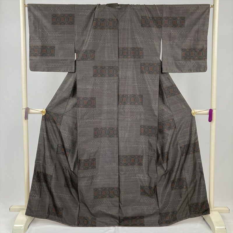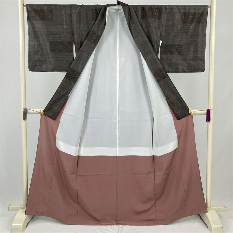 (中古) 大島紬 焦げ茶 カジュアル 横双 蜀江華文 袷 絹 【身丈】160.5cm【裄丈】67cm