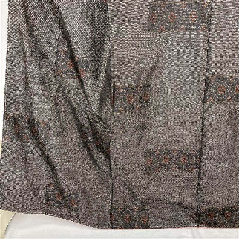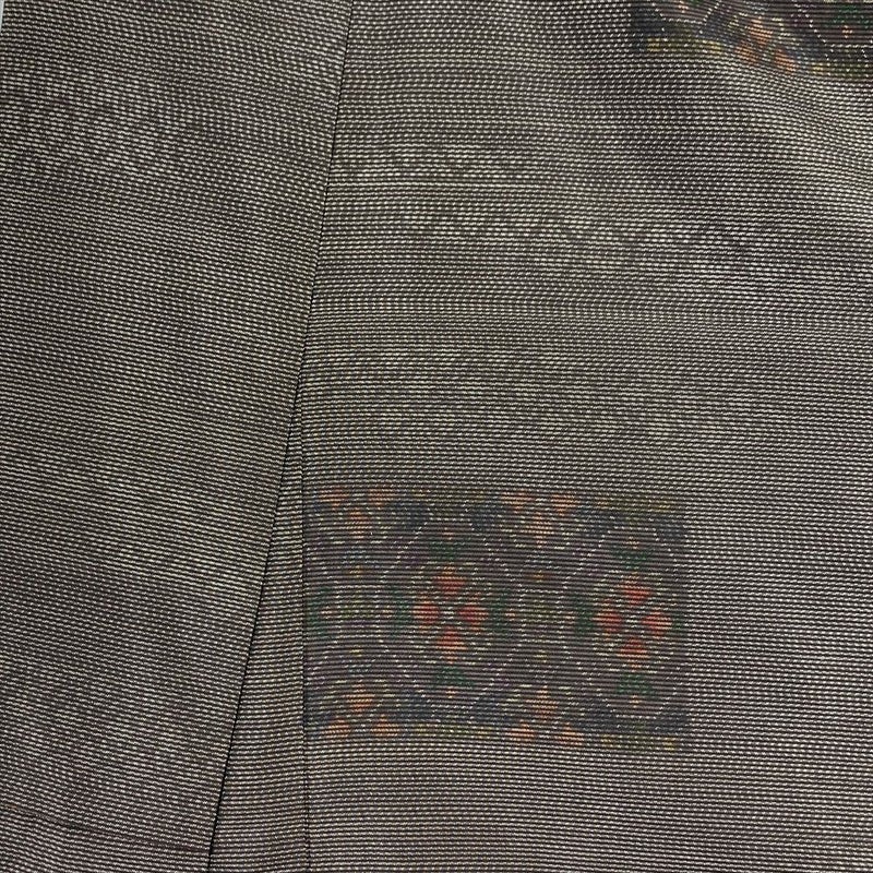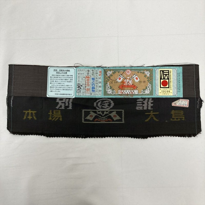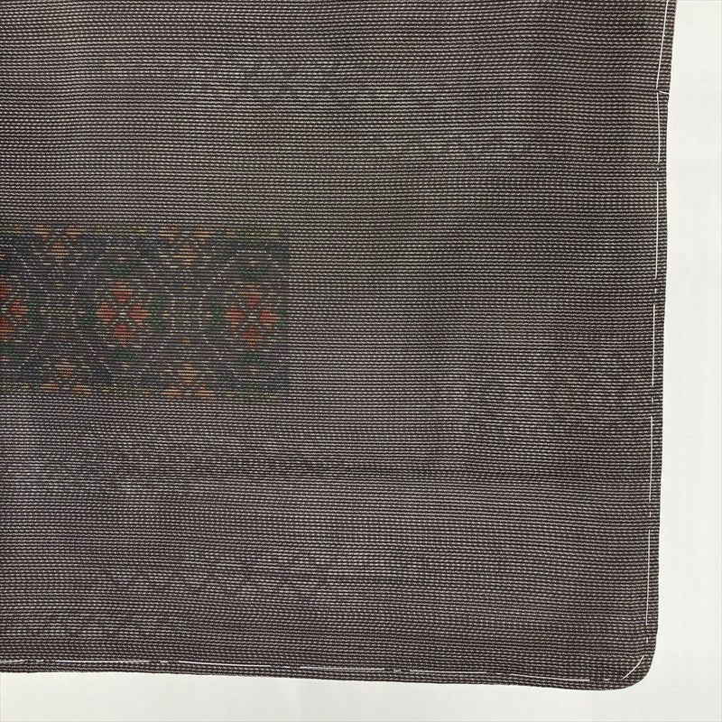落ち着いた焦げ茶の地色に、横双の蜀江華文が品よく映える、大島紬の逸品です。