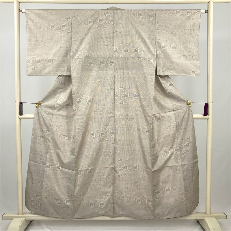 (中古) 紬 生成り カジュアル 雲 有栖川文 袷 絹【身丈】150cm【裄丈】63.5cm