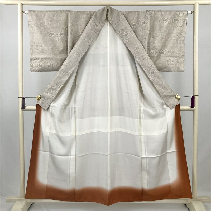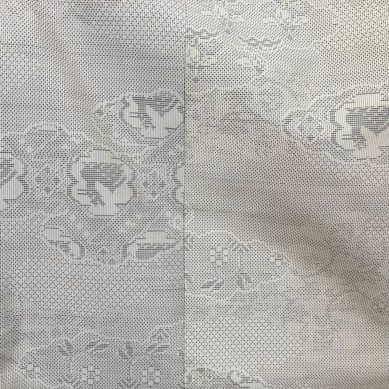 つるりとした平らかな織りが美しい紬地に、生成りとグレーのやさしい色調が静かな品を添える一枚。