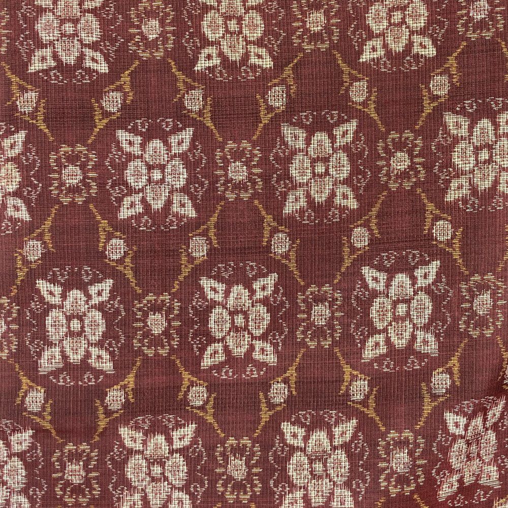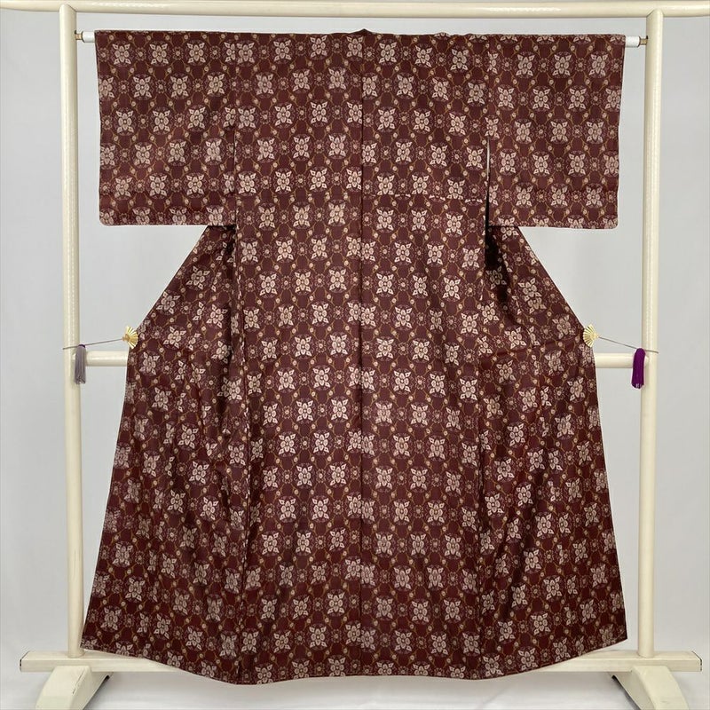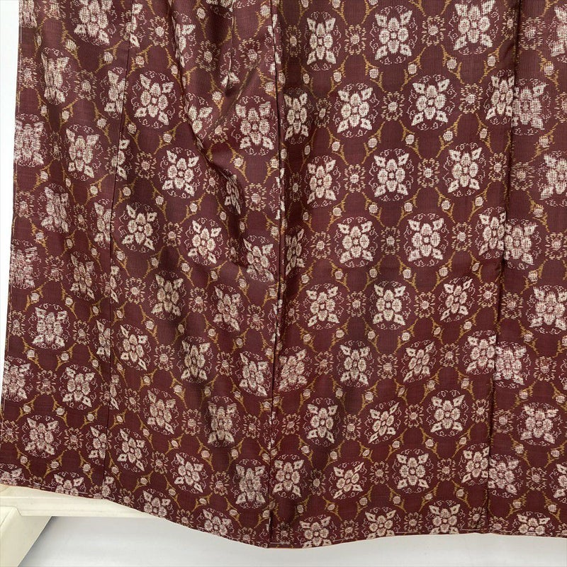 (中古) 紬 臙脂 赤茶 カジュアル 華文 袷 絹 【身丈】153cm【裄丈】63cm