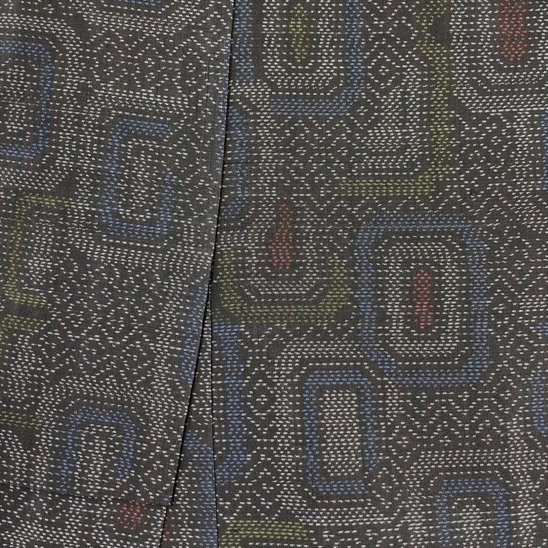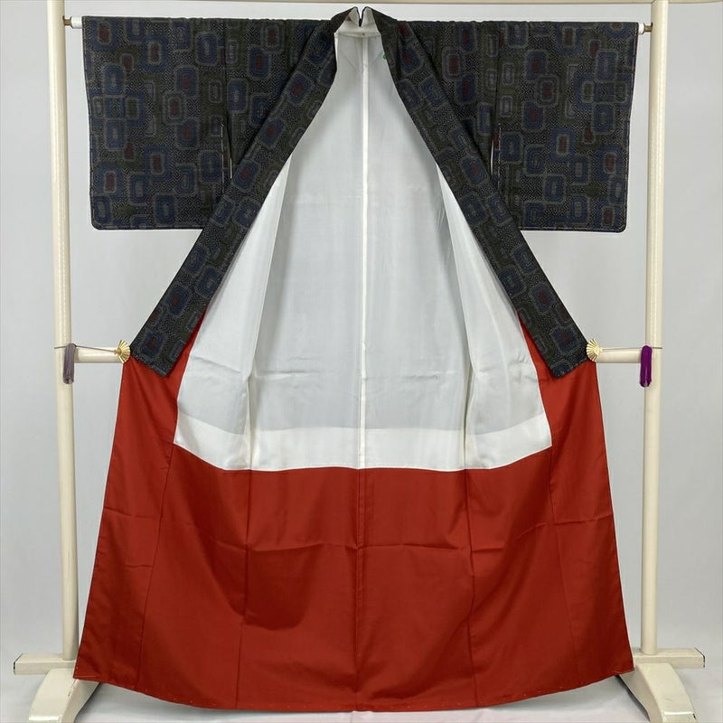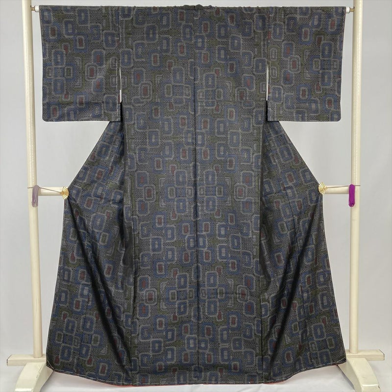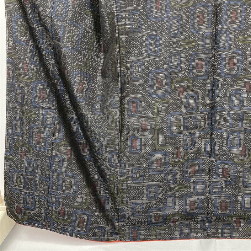 (中古) 大島紬 黒 カジュアル 幾何学柄 袷 絹 【身丈】160.5cm【裄丈】65cm