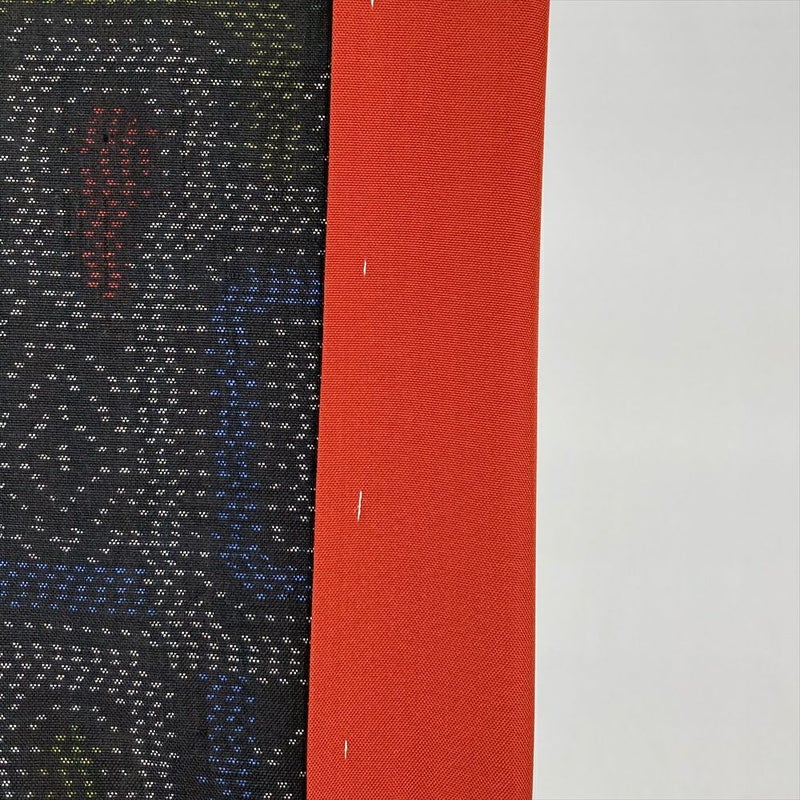 独特の艶と軽さが魅力の大島紬。横双で織り出された幾何学柄が、黒と白、緑と青の配色でモダンな印象を与えます。しなやかな生地の風合いは、着るほどに体に馴染み、着崩れしにくいのも嬉しいポイント。