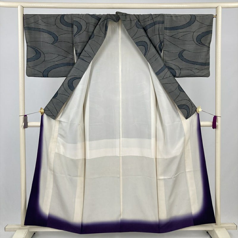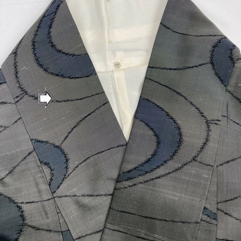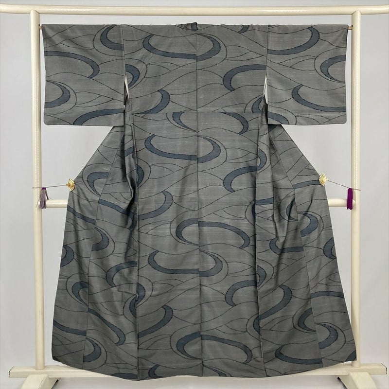 (中古) 紬 グレー カジュアル 流線 袷 絹 【身丈】151cm【裄丈】67cm