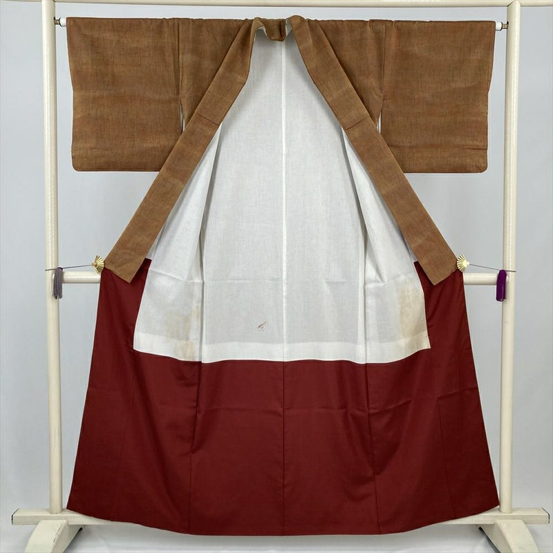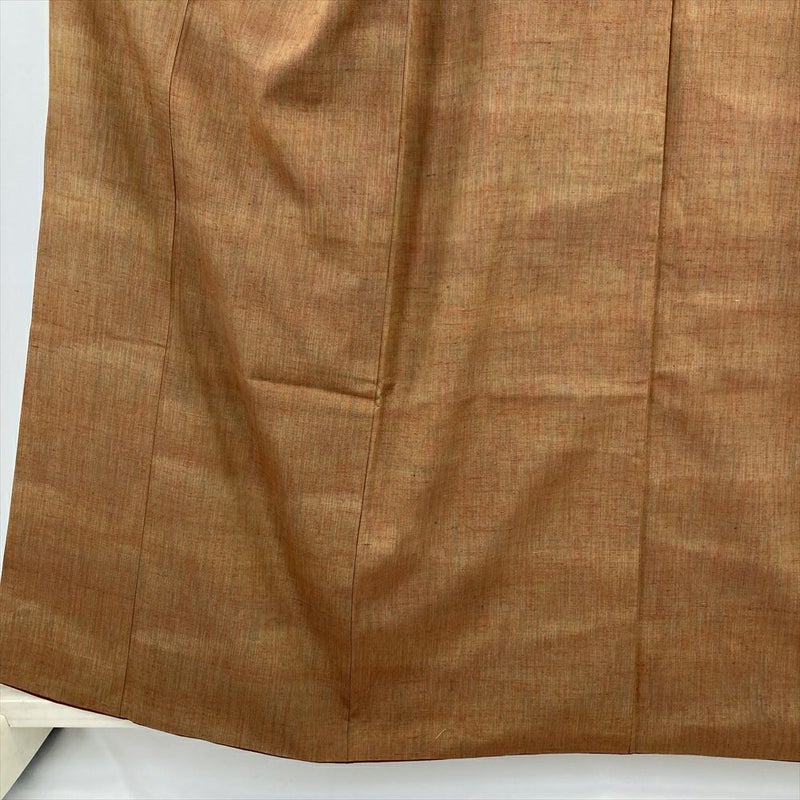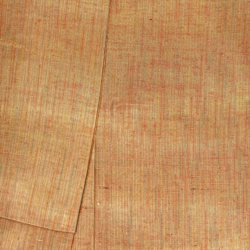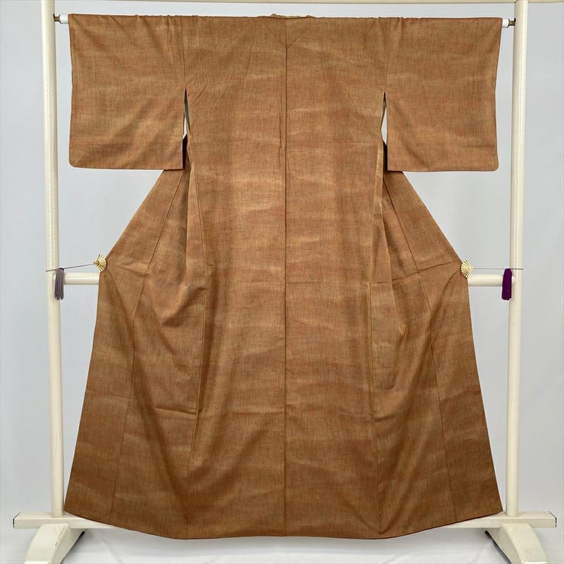 (中古) 紬 オレンジブラウン 茶 カジュアル 途切れ縞 袷 絹 【身丈】154cm【裄丈】64cm
