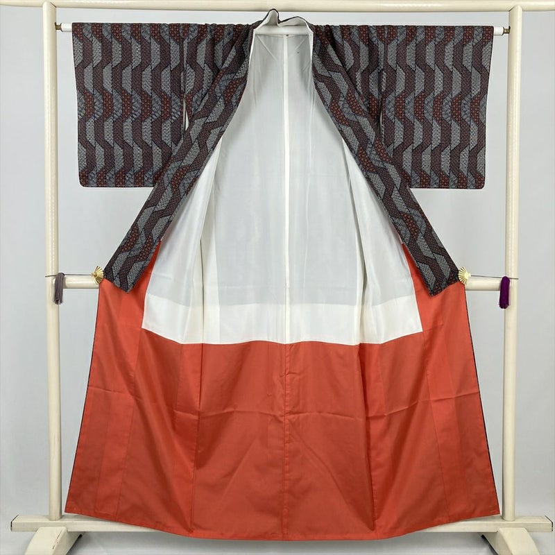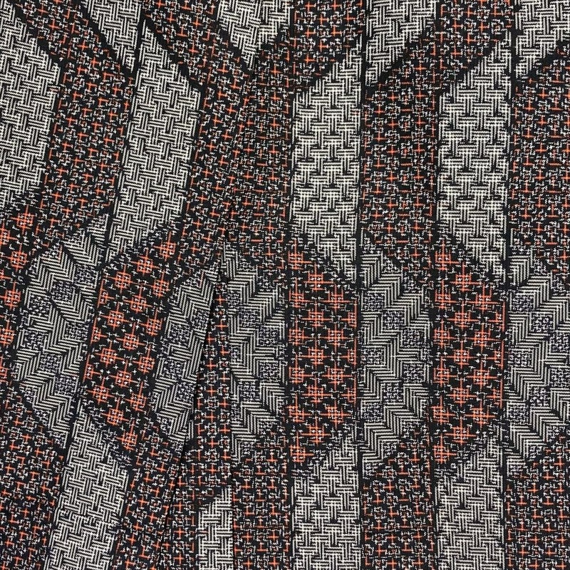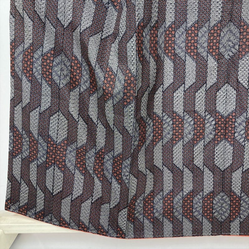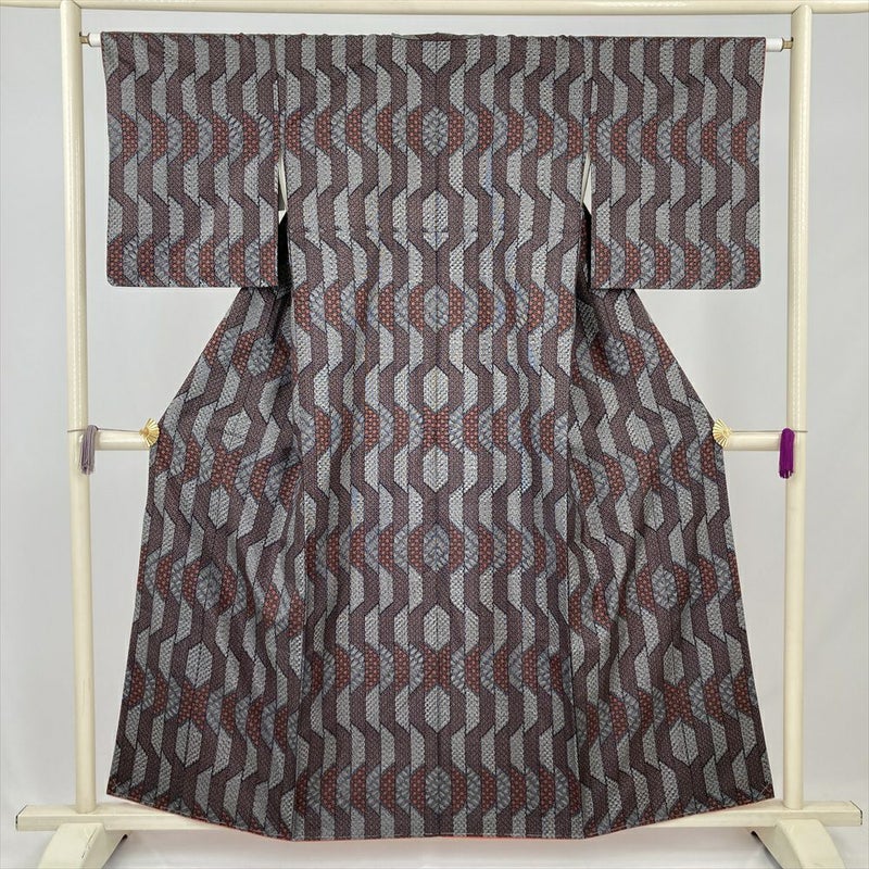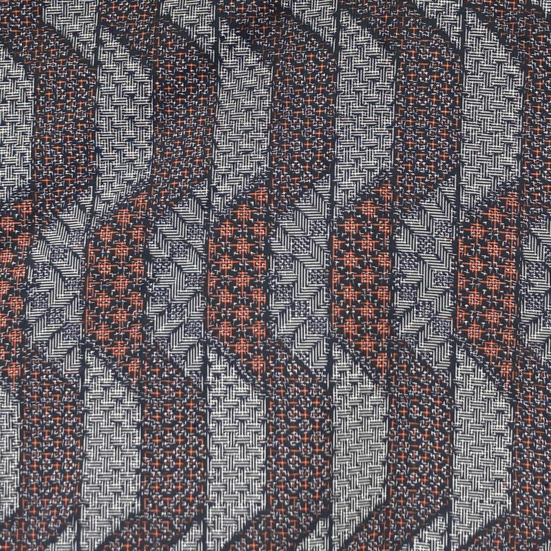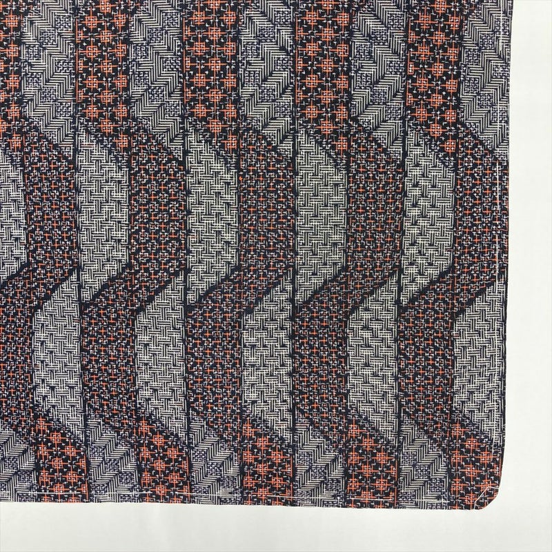 細密な幾何学文様が全体に織り込まれた、おしゃれな印象の紬。