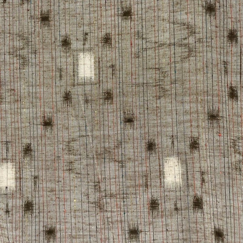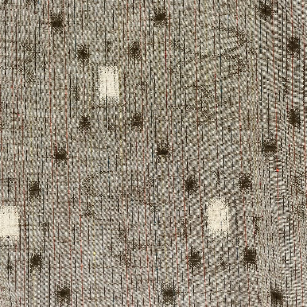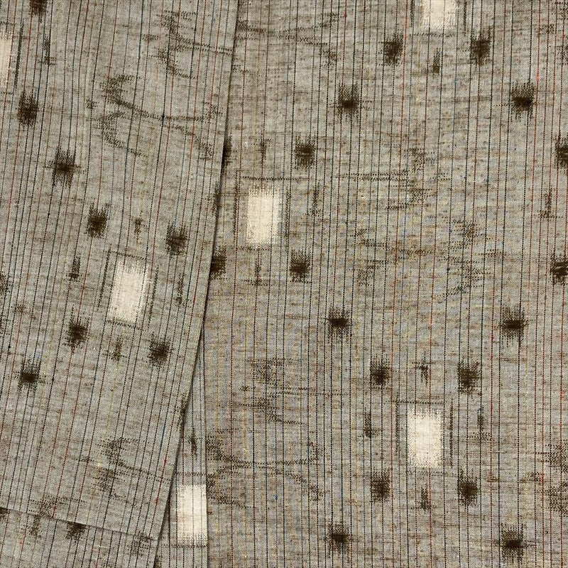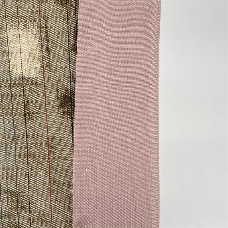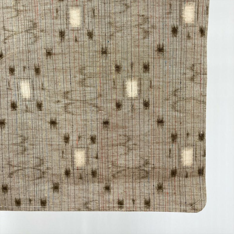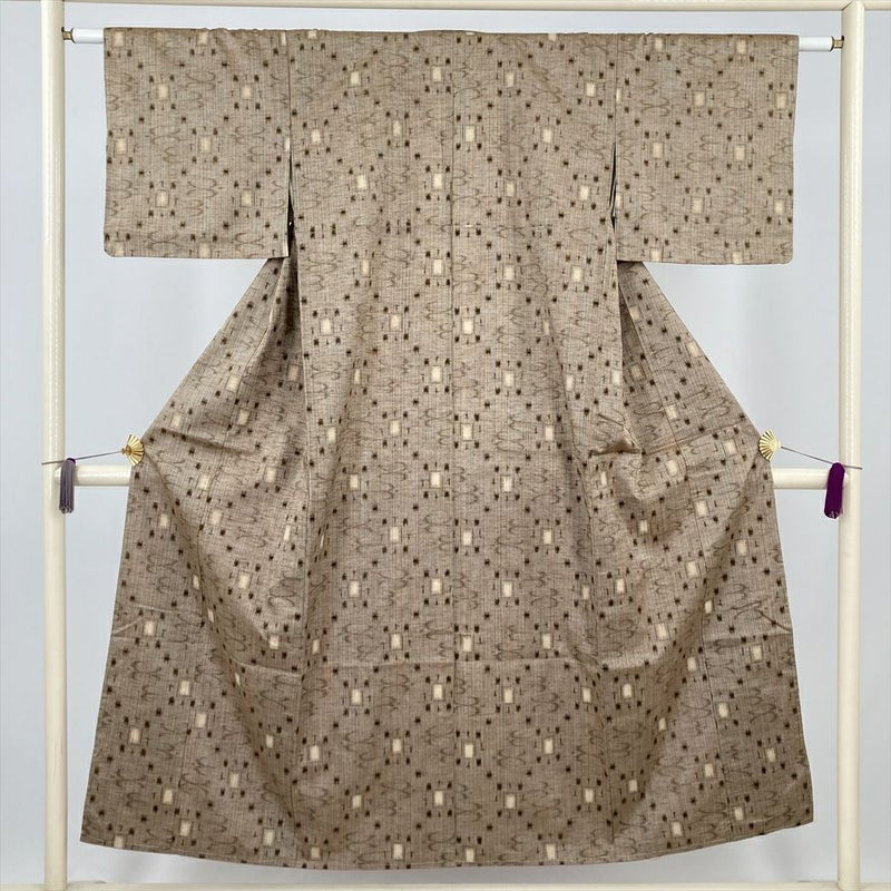 渋みのある薄茶の地色に、縞と燕の文様が静かに映える紬。