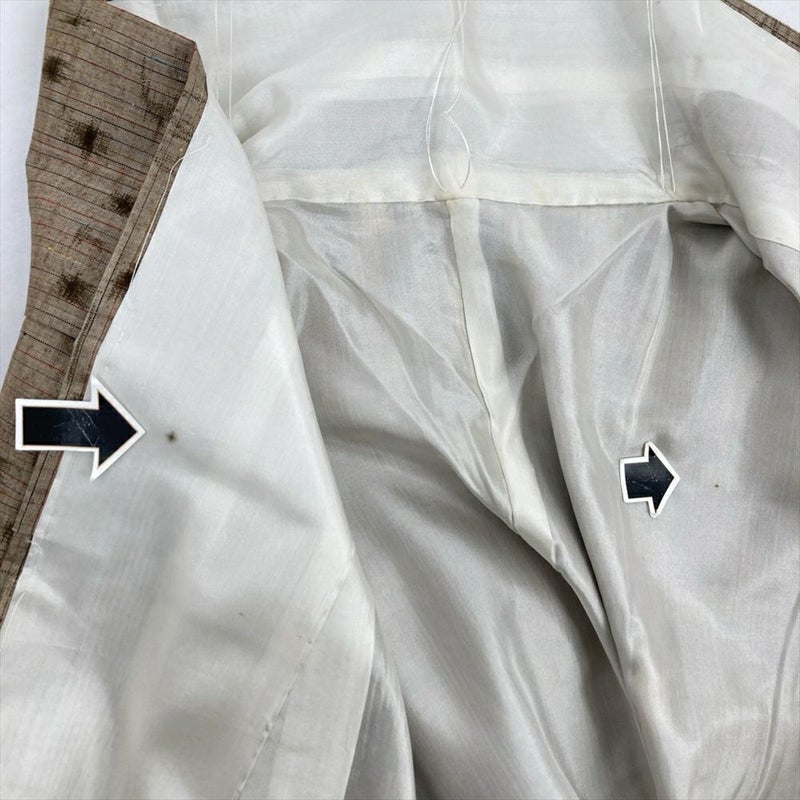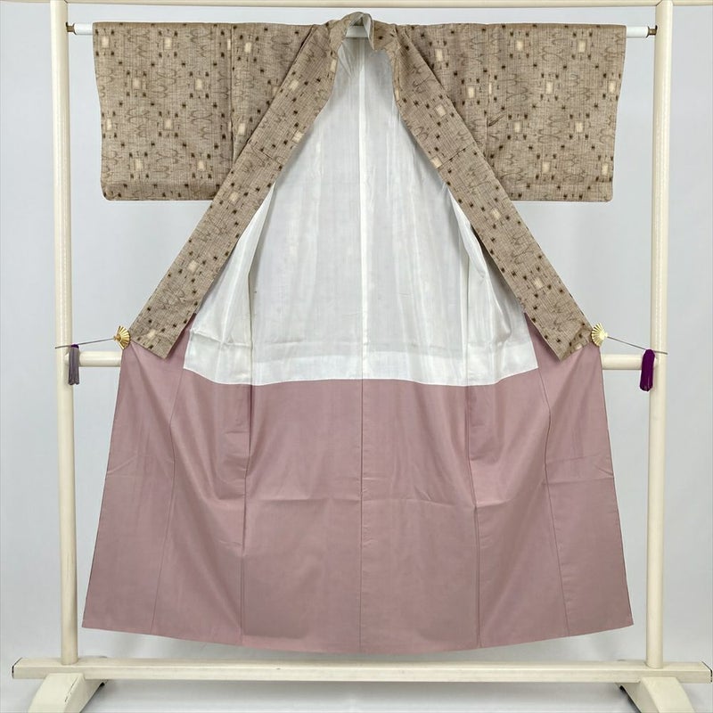 (中古) 紬 薄茶 カジュアル 縞 燕 袷 絹 【身丈】145.5cm【裄丈】61.5cm
