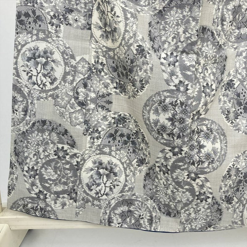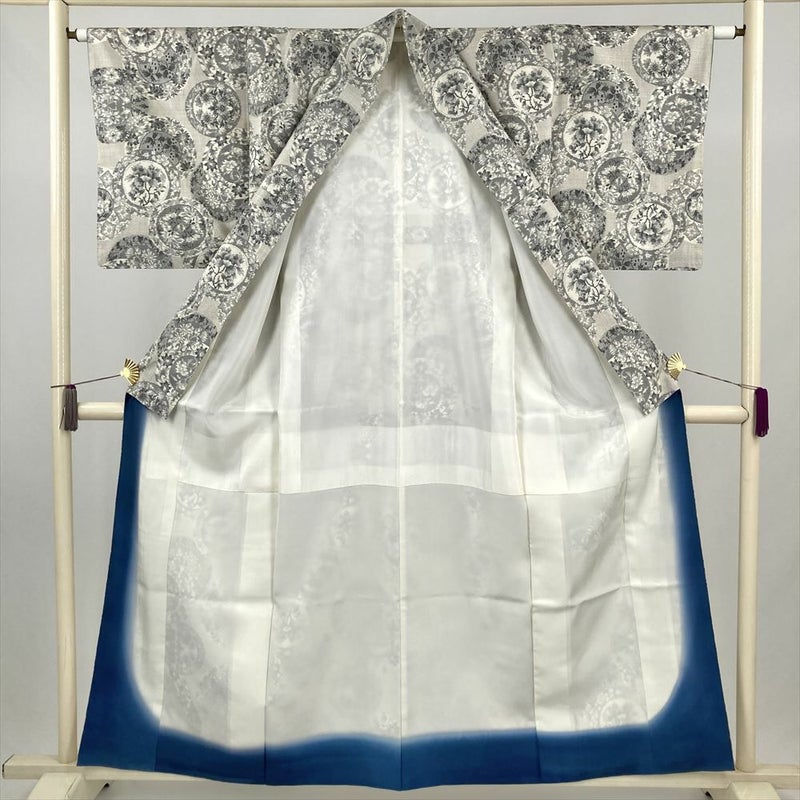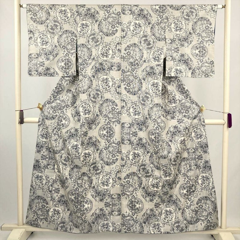 (中古) 大島紬 白 カジュアル 花絵皿 袷 絹 【身丈】153cm【裄丈】63cm