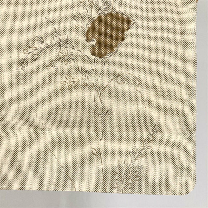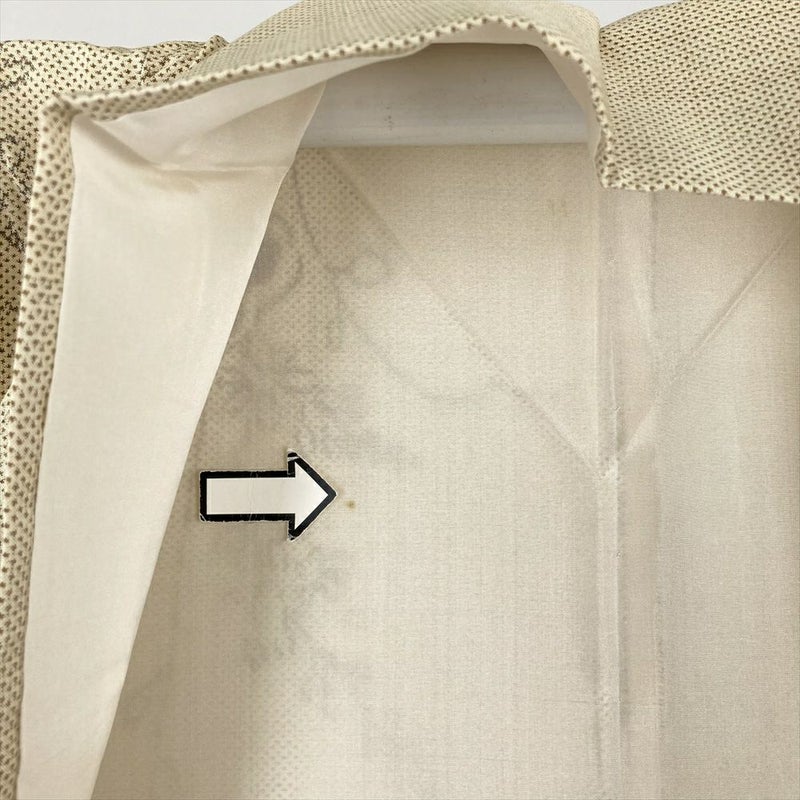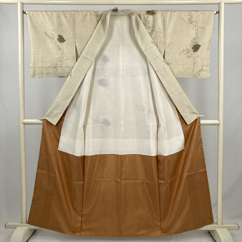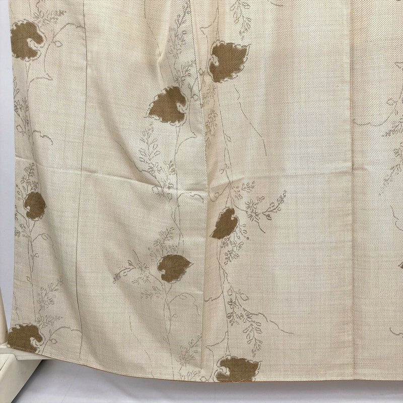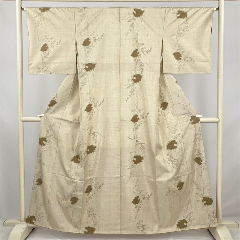 (中古) 大島紬 黄 ベージュ カジュアル 草花文 袷 絹【身丈】156cm【裄丈】65cm