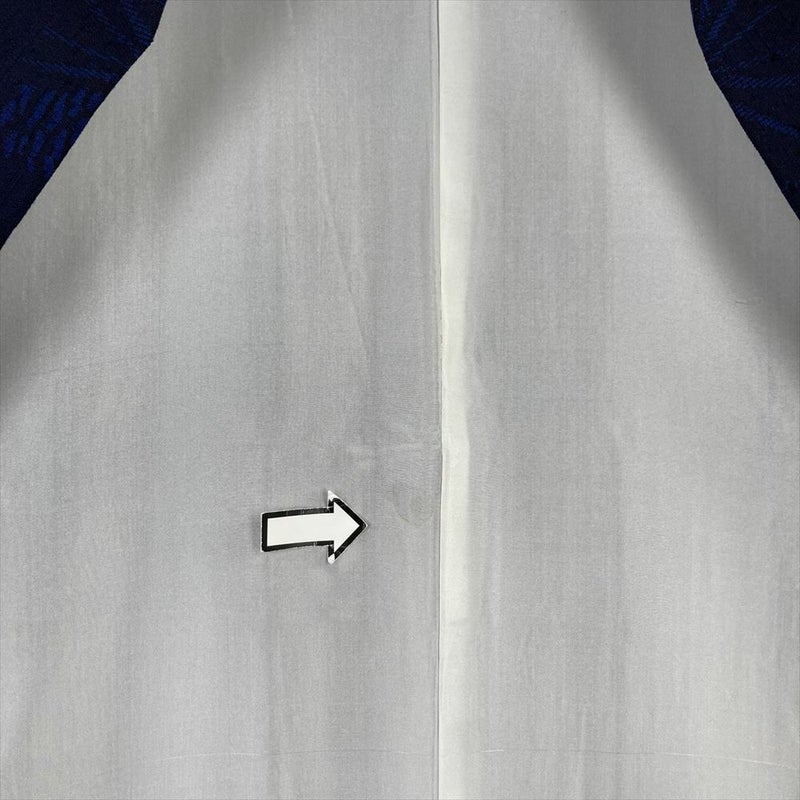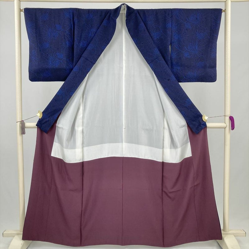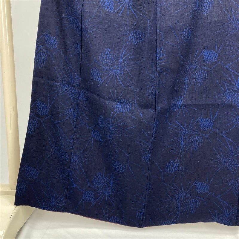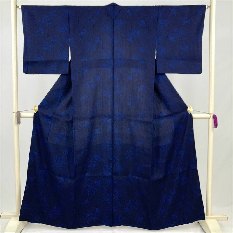 (中古) 紬 紺 カジュアル 紬地 染め 松葉 松ぼっくり 袷 絹 【身丈】158cm【裄丈】65.5cm
