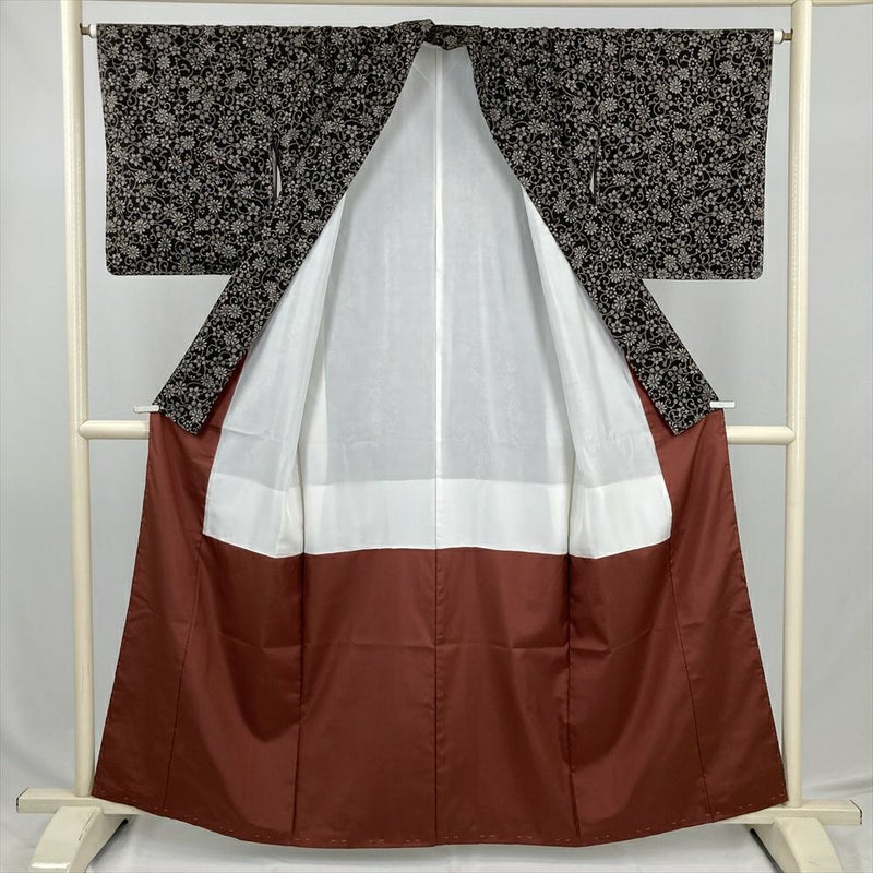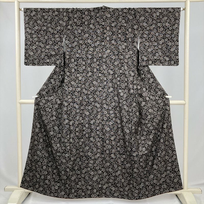 (中古) 大島紬 焦げ茶 カジュアル 本場奄美大島 花唐草 袷 絹 【身丈】154.5cm【裄丈】65.5cm
