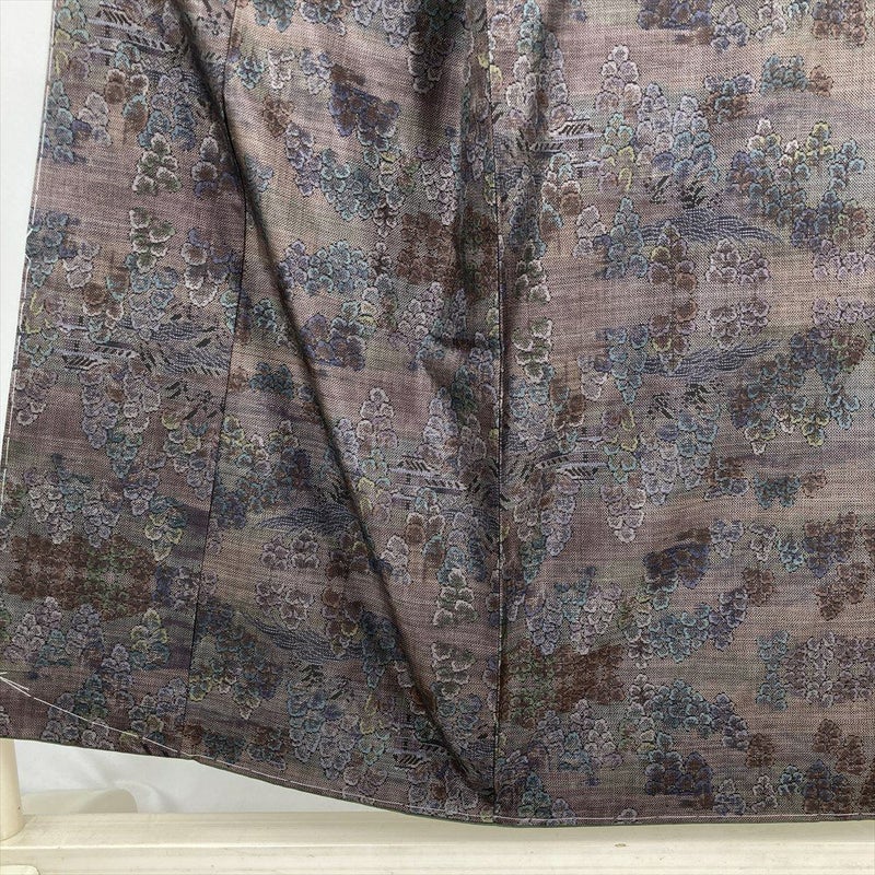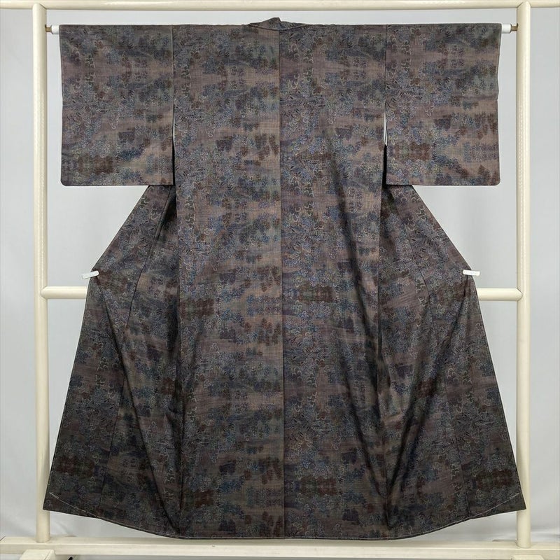 (中古) 大島紬 焦げ茶 カジュアル 風景文 袷 絹 【身丈】145cm【裄丈】63cm