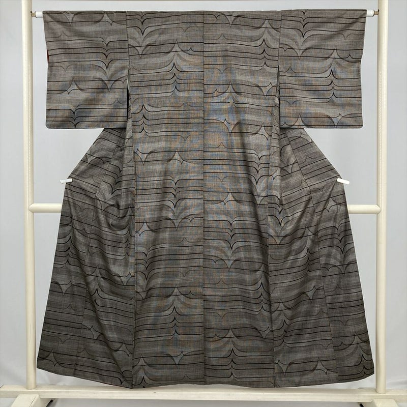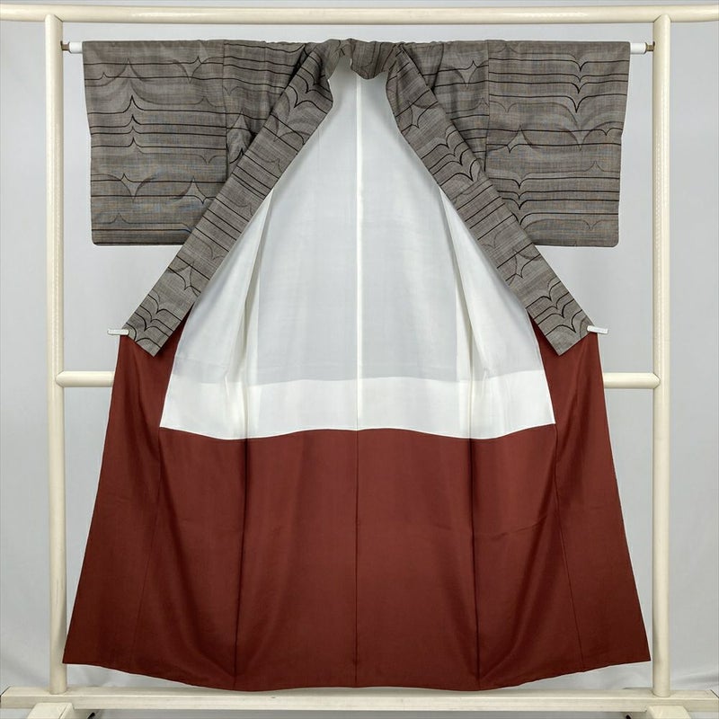 (中古) 大島紬 焦げ茶 カジュアル シンプル 幾何学 袷 絹 【身丈】148cm【裄丈】47.5cm