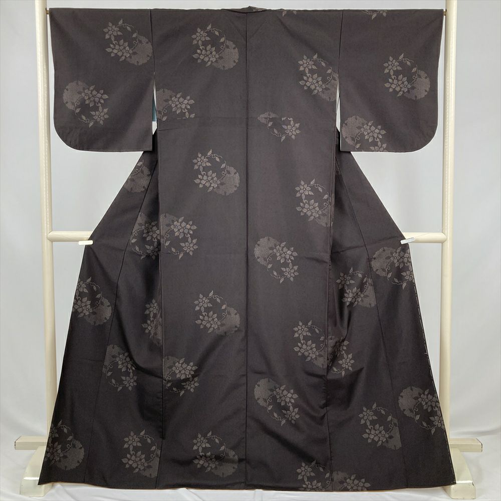 (中古) 紬 焦げ茶 カジュアル 飛び柄 後染め 雪輪 花葉 袷 絹 【身丈】162.5cm【裄丈】66.5cm