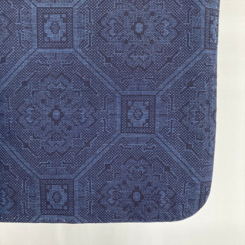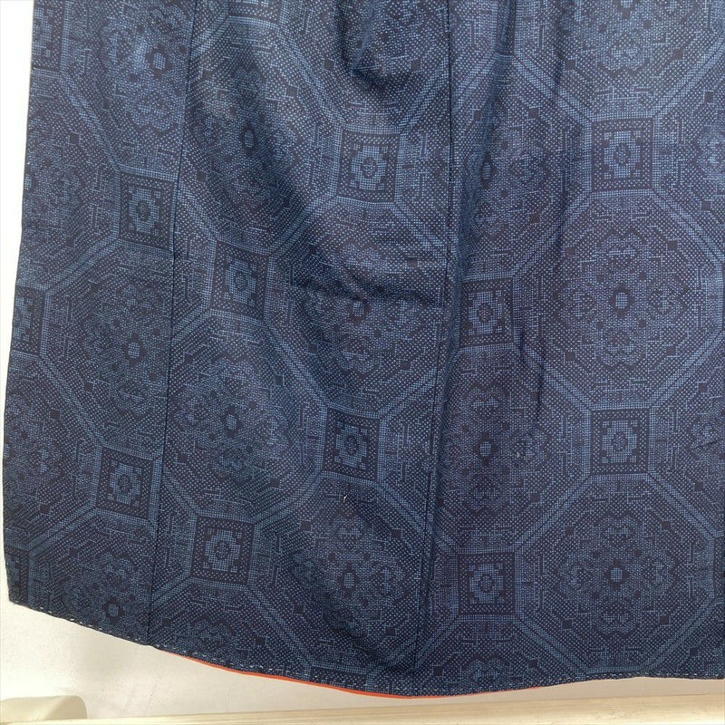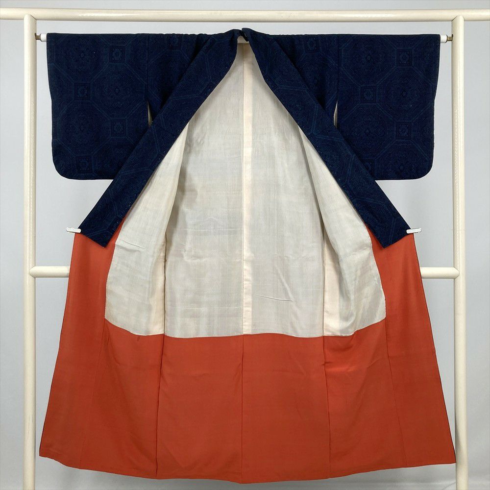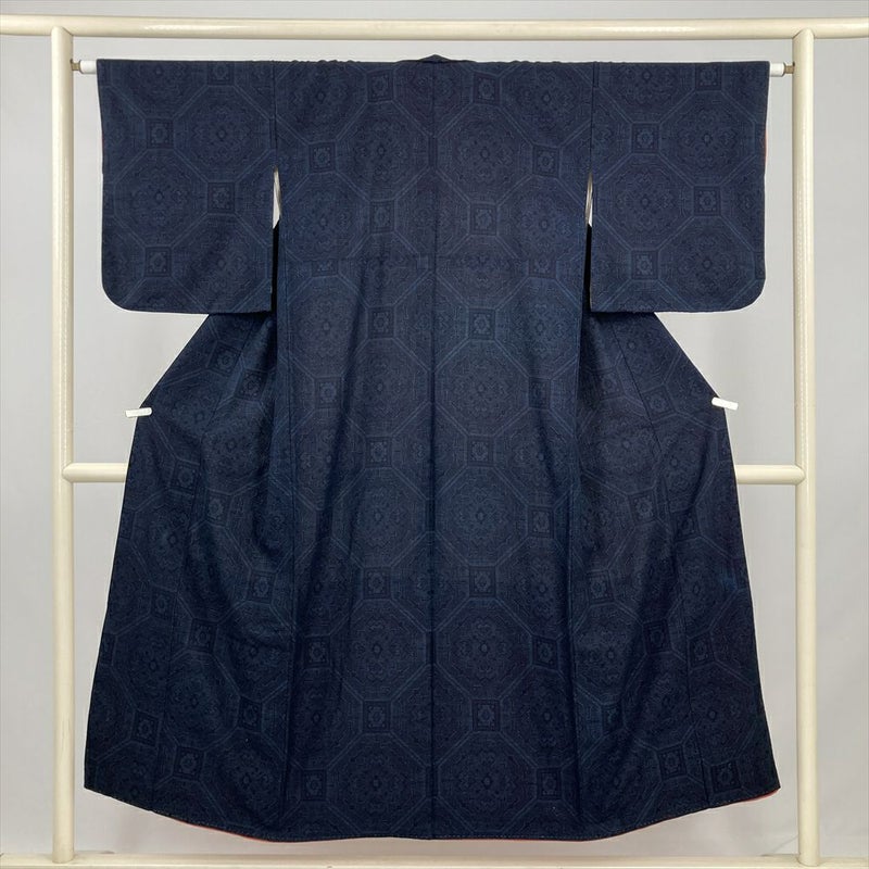 (中古) 綿薩摩 紬 濃紺 カジュアル 蜀江華文 袷 綿 【身丈】143cm【裄丈】64cm