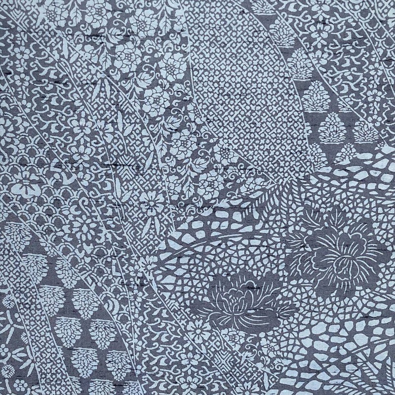 格調高い道長取りで天平文を数々染め上げた、芸術性豊かな一枚。