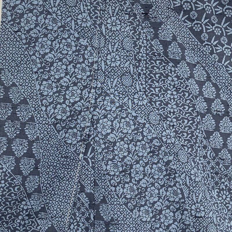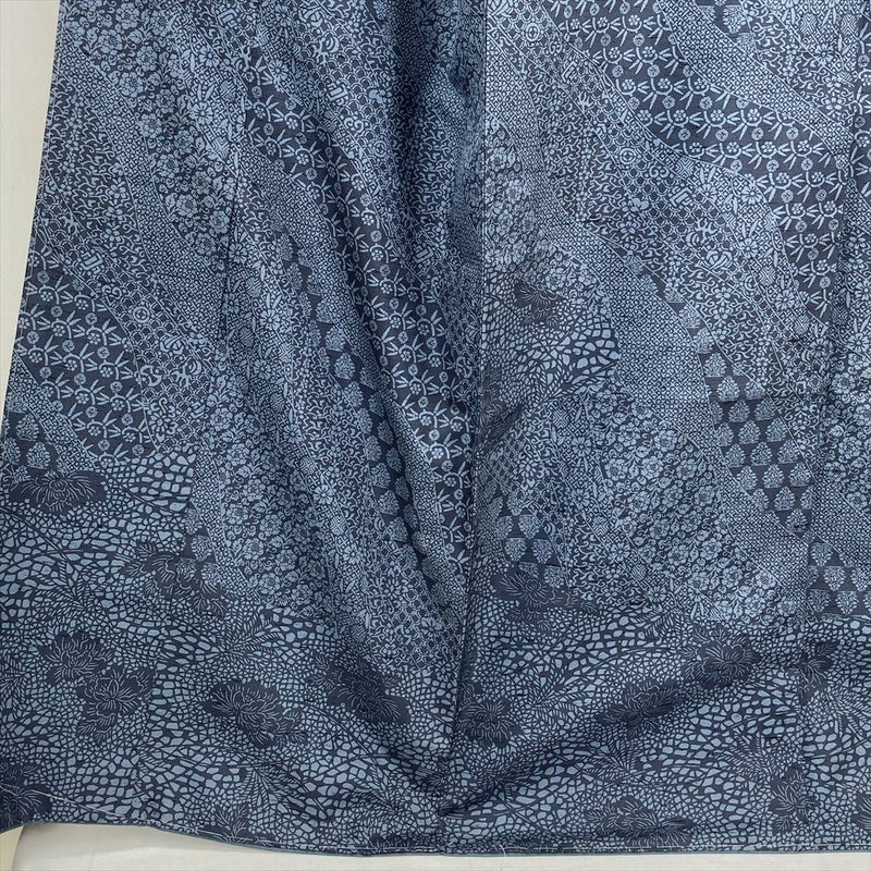 【色柄】灰青 カジュアル 紬地 染め 道長 天平文