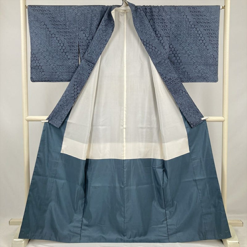 (中古) 紬 灰青 カジュアル 紬地 染め 道長 天平文 袷 絹 【身丈】161cm【裄丈】66cm