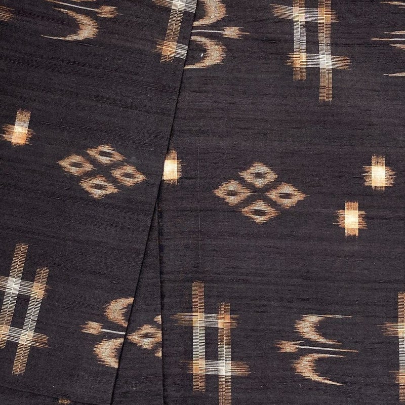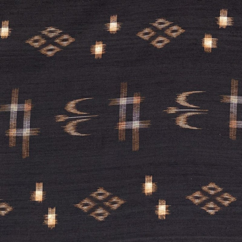国の重要無形文化財に指定される、希少な久米島紬。井桁絣に小鳥を配した、魅力的な伝統の絣柄です。