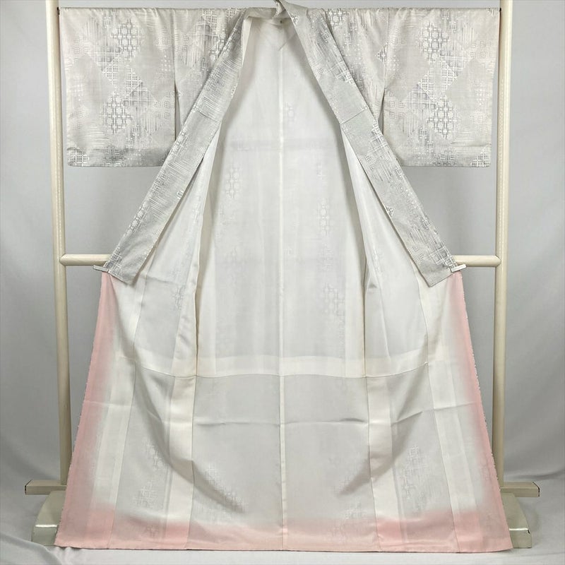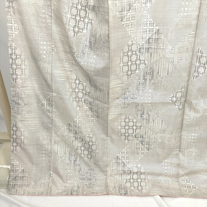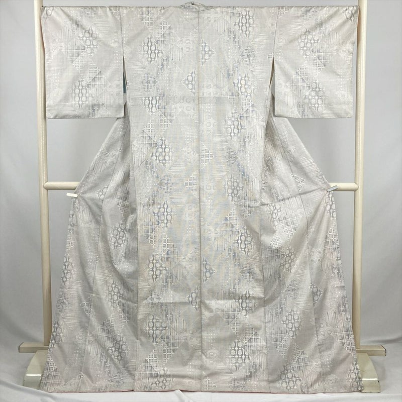 (中古) 大島紬 白 カジュアル 菱 重ね 幾何学 袷 絹 【身丈】167cm【裄丈】68.5cm